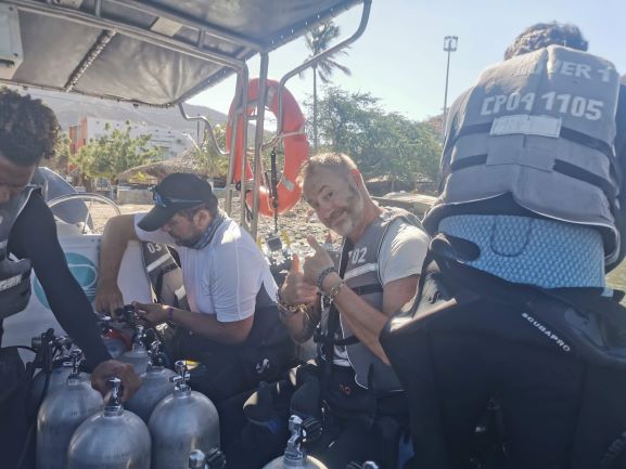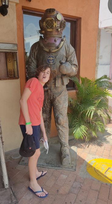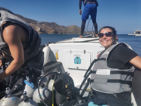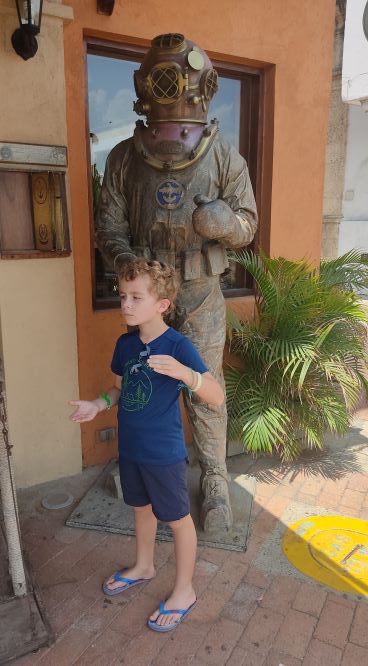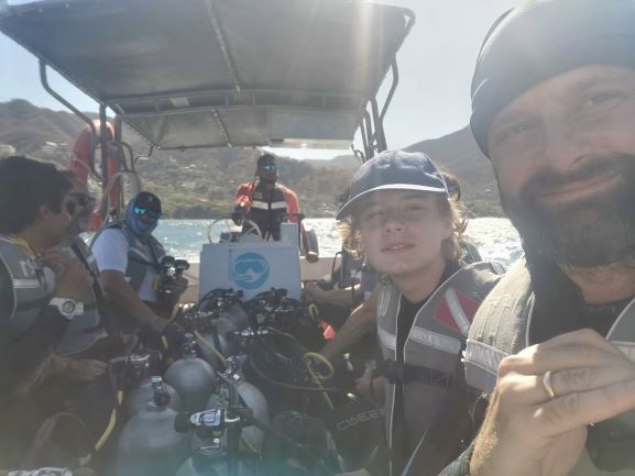 Le lendemain, Ludo et Hugo partent en plongée à Taganga, un village de pêcheurs près de Santa Marta, avec nos amis Sam et Caro. Ils retrouvent également Stéphane et Max (la famille Et pourquoi pas aller voir ailleurs ?). Ils ont 2 plongées prévues dans la matinée. La visibilité n’est pas la meilleure des Caraïbes. Ils voient notamment un hippocampe, des poissons lions, des poissons boites, une murène en train de chasser… Hugo et Ludo sont contents de partager cette 1ère plongée ensemble papa et fiston 🙂