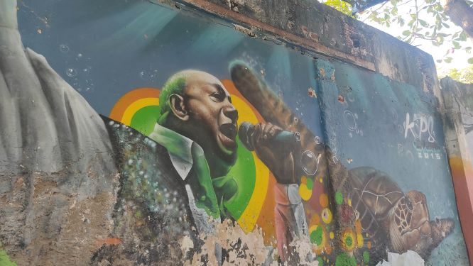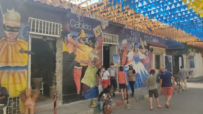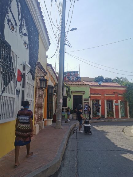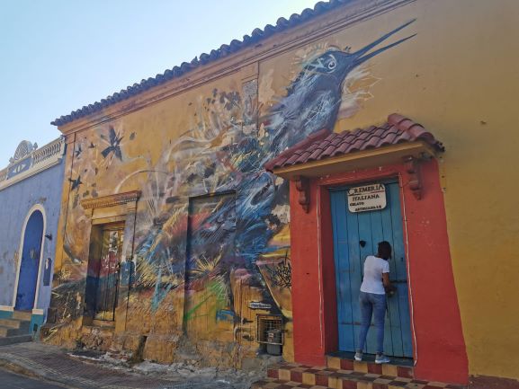 Après cette visite, nous quittons la vieille ville et nous nous rendons dans le quartier de Getsemani. Il s’agit d’un quartier branché et touristique notamment grâce à la présence de nombreuses oeuvres de street art qui attirent les voyageurs. Mais c’est aussi un quartier avec une histoire forte qui a toujours été en lien avec des mouvements de contestation, de révolution et d’alternative. A l’époque coloniale, ce fut le quartier des esclaves noirs transportés de force d’Afrique.