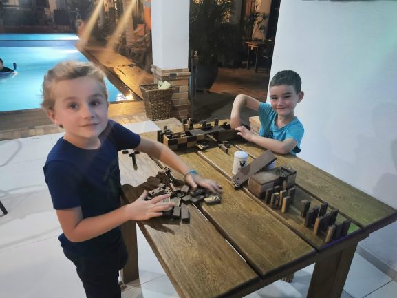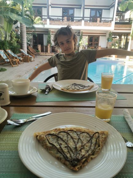 De mon côté, je reste à l’hotel garder les 5 petits gars. Après notre petit-déjeuner habituel aux crèpes nutelle :p, nous nous occupons entre école et piscine. La matinée passe vite.