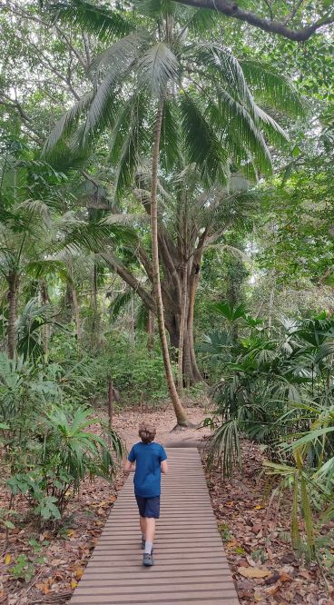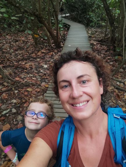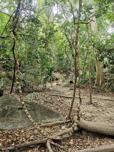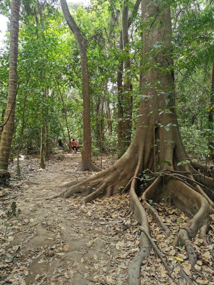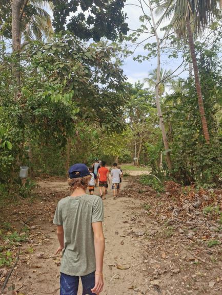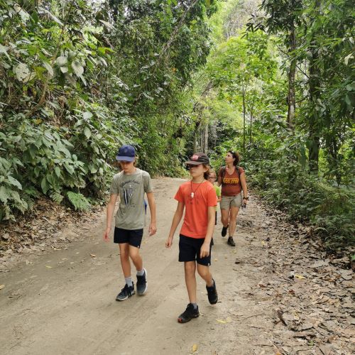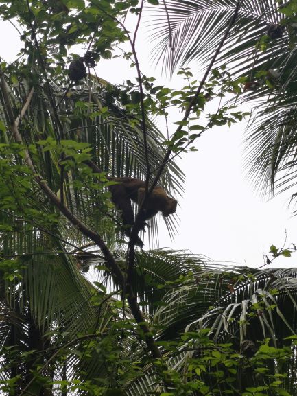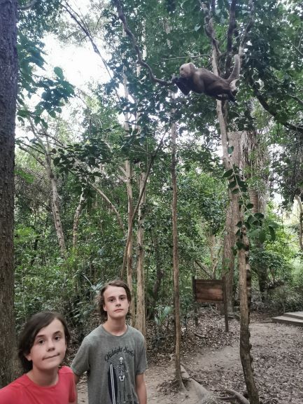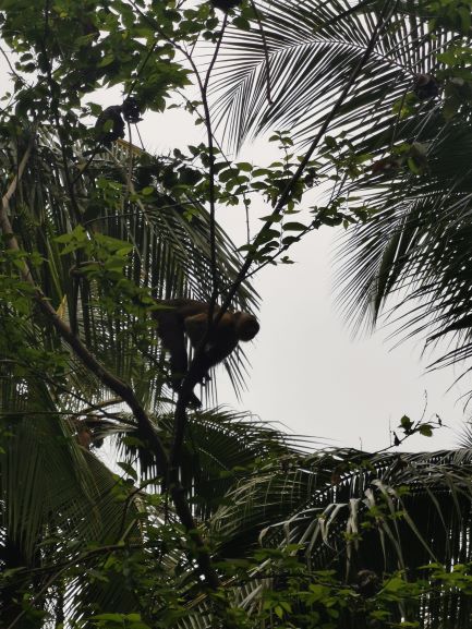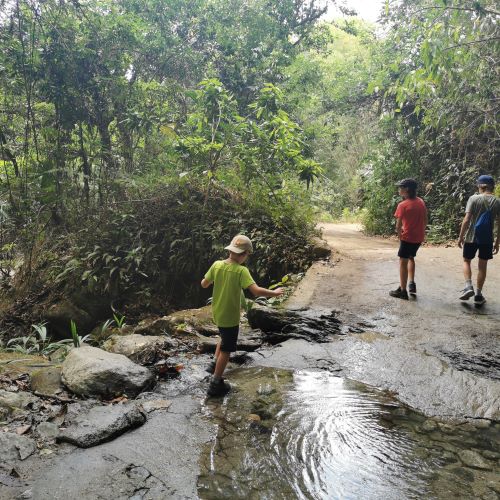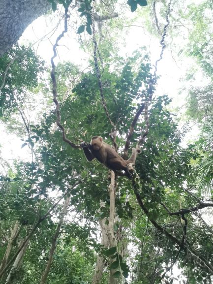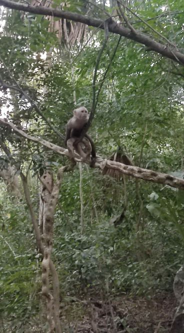 Nous faisons un stop un peu rapide car nous avons 7 kilomètres de marche retour, et il fait nuit à 18h30. Sur notre retour, nous pouvons observer les chauves-souris qui commencent à sortir le bout de leur nez et des petits singes curieux qui viennent nous voir de plus près.