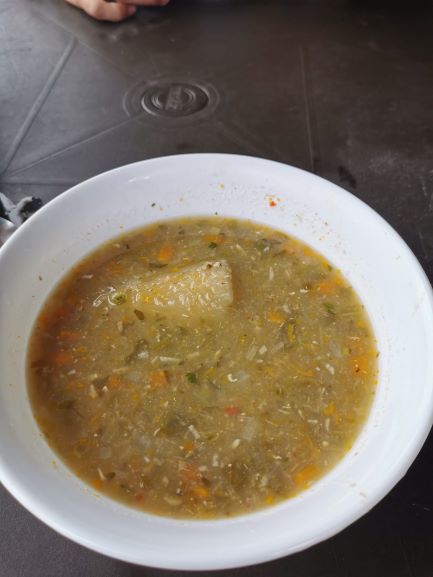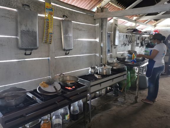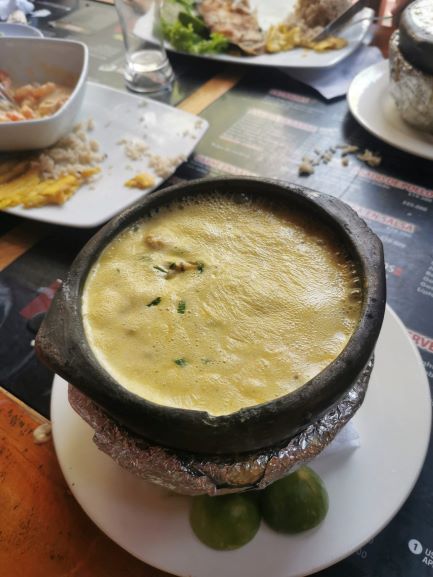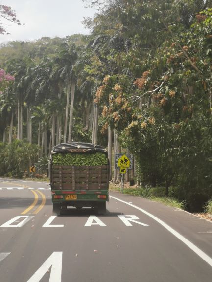 Après 4 kilomètres de marche, nous voilà de retour au village. Nous trouvons un petit resto local avec le menu del dia classique : soupe, viande grillée avec riz et jus de fruits, au total 7,5€pour 5 :). On prend notre dessert dans une patisserie française, ce n’est pas la première qu’on croise en Colombie ! Puis nous reprenons la route pour quitter la région de Santa Marta qui rentre en confinement le soir-même.