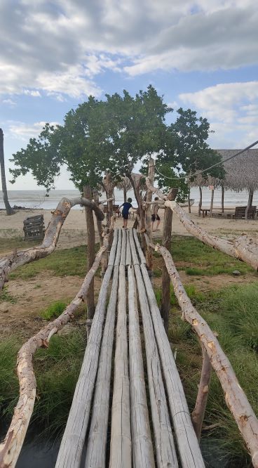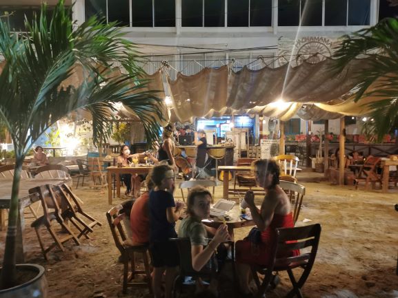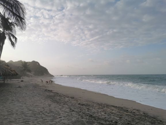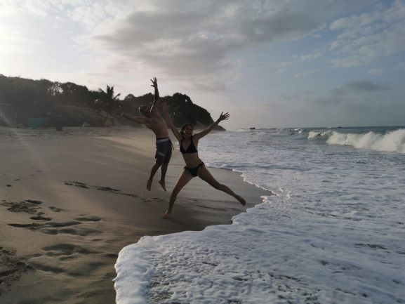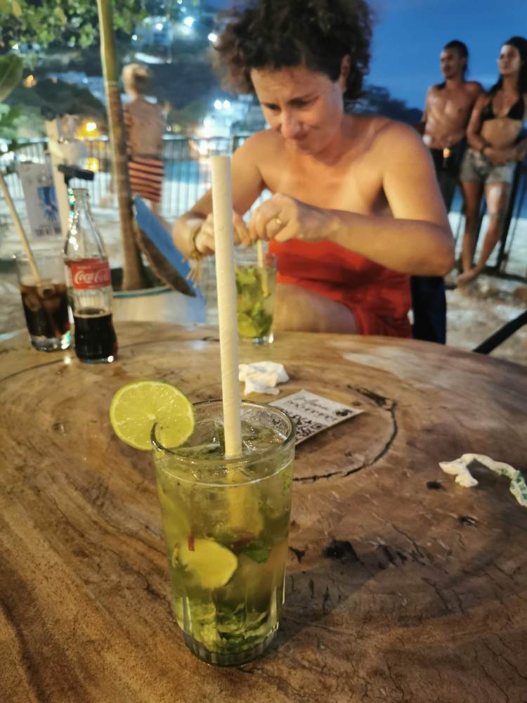 Nous finissons notre route à la tombée de la nuit. Nous arrivons dans le village de Palomino, blindés de touristes pour le coup puisque ce coin est réputé festif et est le premier village balnéaire à la sortie de la région de Santa Marta qui vient de se faire confiner. Nous nous posons nos affaires à l’auberge et allons retrouver nos amis Et pourquoi pas aller voir ailleurs ? dans un restaurant qui nous a été recommandé. Bon choix, le restaurant fait des ceviche et des très bons mojitos servis dans des demi-bouteilles de Corona 🙂