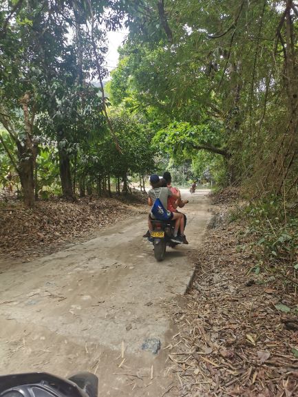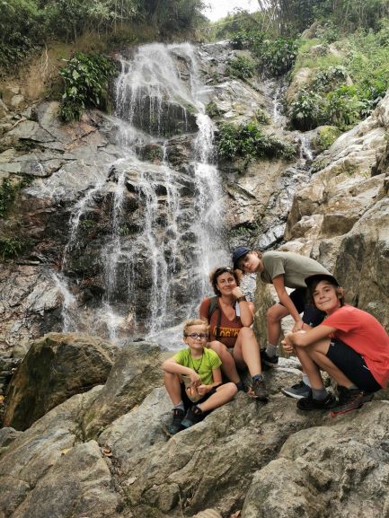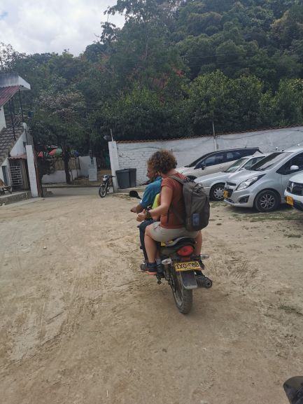 Le lendemain, nous quittons nos amis. Ils repartent en direction de Carthagène. Nous nous rendons à Minca, un village dans la Sierra Nevada à une quinzaine de kilomètres de Santa Marta. Une fois au village, des motards nous persuadent de faire notre ballade à la cascade à l’aller en moto et retour à pied. C’est parti pour 4 kilomètres dans les chemins de terre, Malo et moi sur une moto, Hugo et Louis sur une autre et enfin Ludo sur la 3ème. Je ne suis pas une grande fan des deux roues mais c’est une expérience dans ce cadre ! Alors je tiens bien mon petit gars et c’est parti !