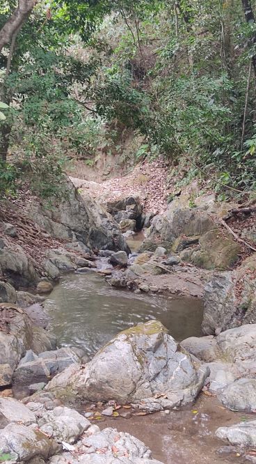 Nous rejoignons une première plage. Après ces quelques kilomètres de marche dans la jungle, cela fait du bien de se rafraichir dans « la piscina ». La plage forme une anse protégée des vagues, ce qui en fait une sorte de piscine calme pour se baigner.