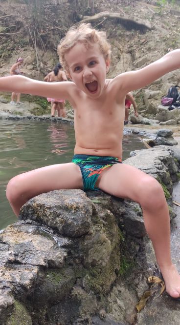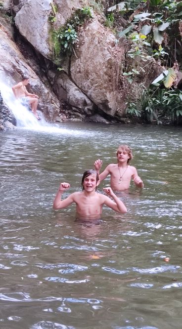 Il nous reste une dernière bonne montée à pied pour rejoindre la cascade. L’eau est bien fraiche mais les enfants sont téméraires, ils ont l’habitude de l’Ardèche 🙂