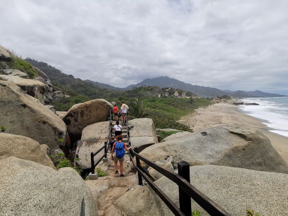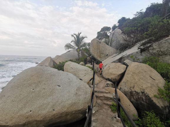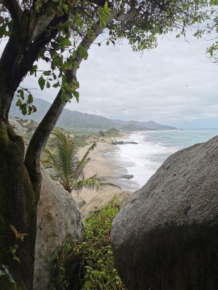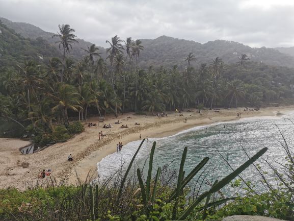 Le lendemain, nous faisons route pour le célèbre parc Tayrona, une réserve qui abrite une très belle biodiversité, située dans la Sierra Nevada avec des places turquoises et du sable blanc. C’est à l’origine la terre de l’ancienne civilisation autochtone du même nom, qui a été exterminée par les colons. Elle reste un territoire sacré pour les peuples indigènes de la Sierra Nevada.