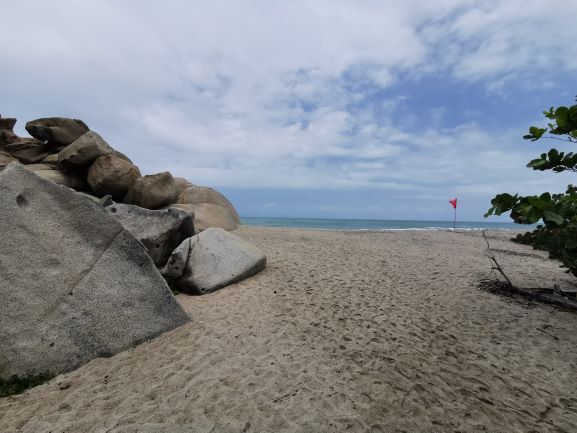 Sur les conseils de notre hôte de Santa Marta, nous nous dirigeons ensuite sur la Playa del Cocos pour prendre notre déjeuner tardif sur le restaurant de la plage et profiter de la baignade le reste de l’après-midi. C’est un sacré bon plan, la plage est bien cachée, il faut en effet vraiment bien connaître pour pouvoir s’y rendre !