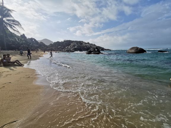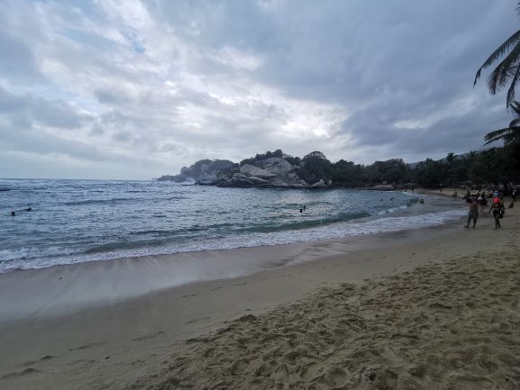 Après une petite heure de pause, nous reprenons la marche pour rejoindre la dernière plage réputée du parc, Cabo San Juan. Le coin est en effet très beau. Il y a pas mal de monde mais nous sommes en pleine semaine sainte, une grosse semaine de vacances en Colombie. Les gens peuvent également venir sur cette plage en bateau depuis Taganga. Malgré le monde, cela n’enlève rien aux charmes de ce petit coin de paradis.