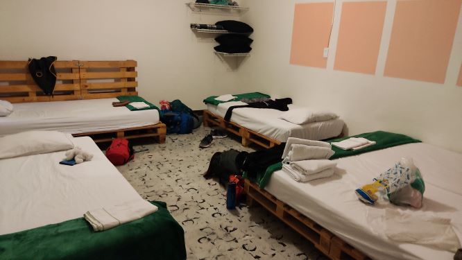 Nous nous installons dans notre auberge de jeunesse, très bien accueillis par notre hôtesse qui a à cœur d’échanger quelques mots avec nous et aider Ludo à améliorer son espagnol 🙂 Ce soir, ce sera repas à domicile vu qu’on ne peut plus sortir !