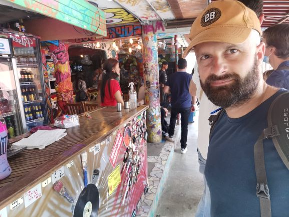 Nous faisons ensuite la rencontre d’une figure du quartier, Chota 13, photo oblige !