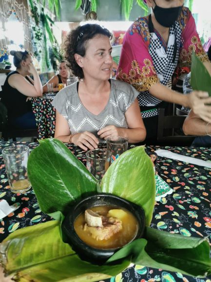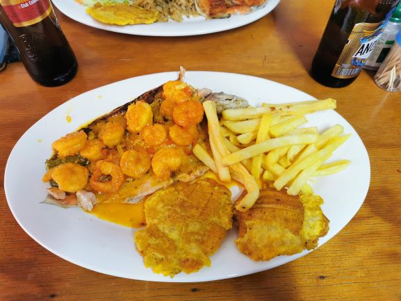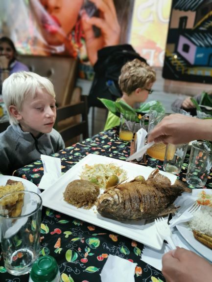 Nous sommes arrivés juste à temps avant que l’orage n’éclate, et pas un petit ! Du coup le restaurant, fait de tôles et de bâches principalement, ne résiste pas bien longtemps et commence à fuire de partout. Le repas est un peu épique mais on en rigole bien. On en ressort 2 heures plus tard avec le soleil qui pointe de nouveau son nez. C’est ce qu’on appelle une belle gestion du timing 🙂