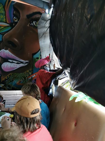 Nous terminons la visite de ce quartier en sortant des sentiers battus et en s’enfonçant dans les petites ruelles. Ludovic nous permet ainsi de mieux nous rendre compte de la promiscuité et du quotidien de ces habitants.