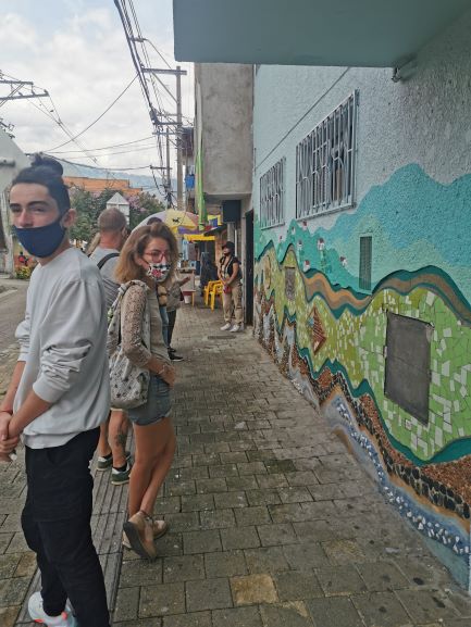 Nous sommes au milieu de la semaine sainte, grande semaine de festivités et vacances pour les colombiens. La gouvernement a alors mis en place de grosses restrictions cette semaine à cause de la pandémie : couvre-feu de 17h le soir jusqu’à 5h du matin le lendemain. Apparemment tous les quartiers ne le respectent pas, vu que nous traversons la ville après 17h, nous constatons que certains endroits sont encore noirs de monde.