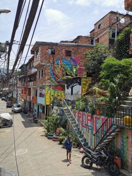 La Comuna 4 est en fait une ancienne déchetterie sur laquelle habitait une grande communauté dans des conditions très précaires mais pour autant ils étaient attachés à ce quartier et son histoire. Quand le gouvernement a décidé de raser la Moravia et d’ « exproprier » ses habitants, des leaders communautaires ont pris les choses en main et ont transformé la déchetterie en un jardin urbain. Et cela a fonctionné, le gouvernement a abandonné le projet.