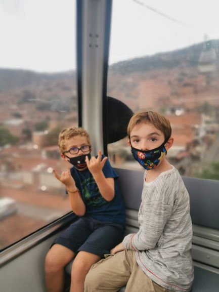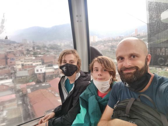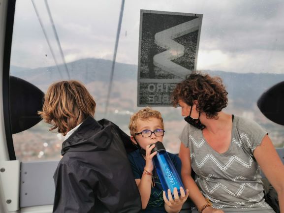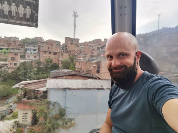 Nous laissons notre super guide à la station de métro pour terminer notre journée dans le téléphérique de Medellin, qui amène au quartier de San Augusto. Ce sont des français qui ont implanté le téléphérique dans cette ville. Avec une très faible emprise au sol, ce moyen de transport en commun est très adapté au relief et aux contraintes de construction. Nous profitons d’un panorama splendide sur la ville. Puis nous rentrons juste pour le couvre-feu à quelques dizaines de minutes de près. Mais vu le monde encore dans le métro à 17h, nous étions loin d’être les seuls à ne pas respecter stricto sin sus le couvre-feu.