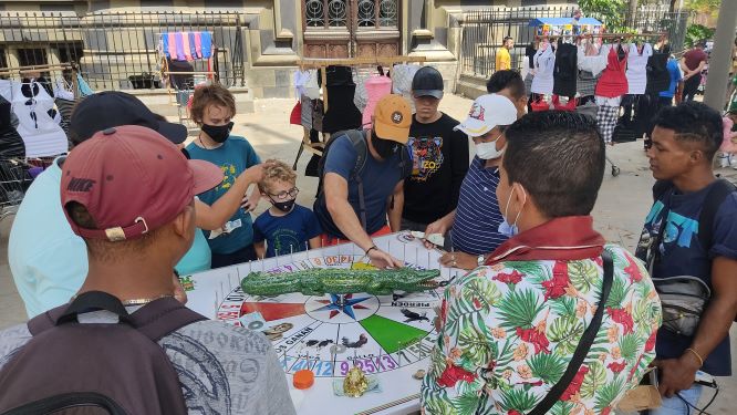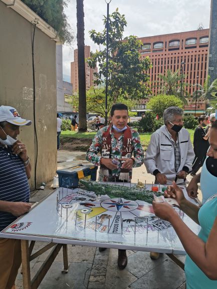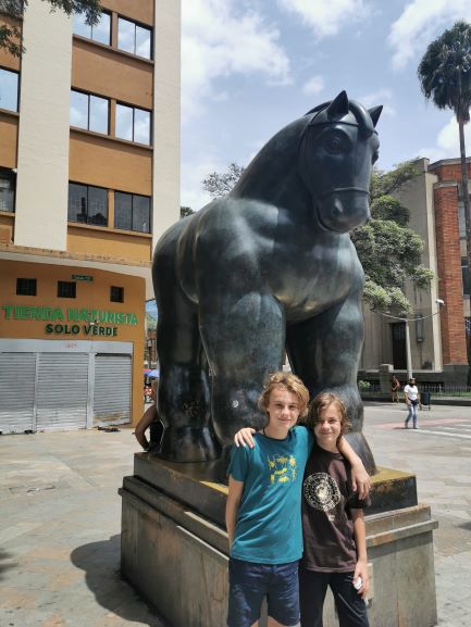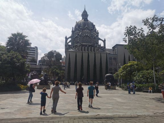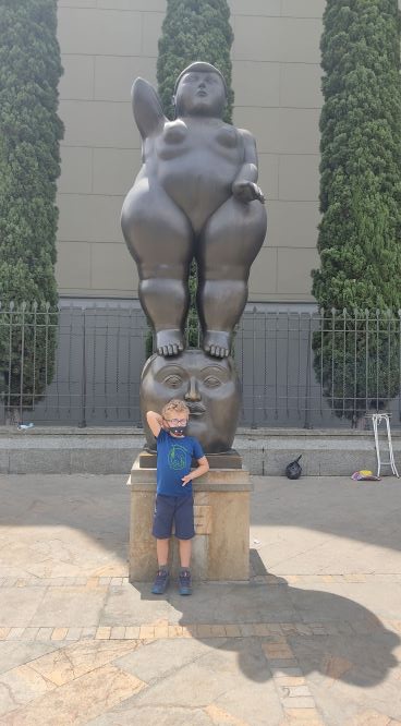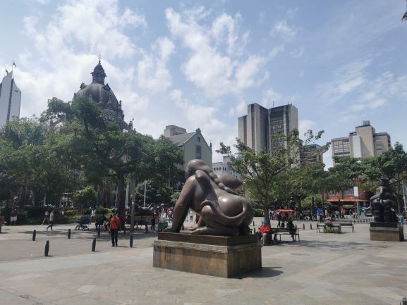 Le lendemain matin, nous profitons de notre dernière matinée sur Medellin pour visiter le centre-ville et la fameuse place Botero. C’est très différent des autres quartiers, ici on trouve de grands immeubles, les nombreux vendeurs sur des petits stands de marché, des jeux de chance (Ludo s’essaiera à tourner la roue de la fortune à la demande d’un joueur). Sur la place, on retrouve les nombreuses sculptures de l’artiste colombien. Nous ne pourrons malheureusement pas visiter le musée fermé en ce dimanche.