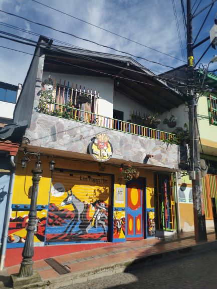 Puis nous redescendons à 5 dans un tuk tuk (si si ça rentre !!!) pour rejoindre le centre de Guatapé et flâner dans ses ruelles colorées. Nous prenons notre temps ce jour-là avec nos amis : déjeuner dans un premier restaurant où on reste sur notre faim, alors un petit dessert à la crêperie bretonne du coin (et oui ! beaucoup de français s’installent en Colombie :))