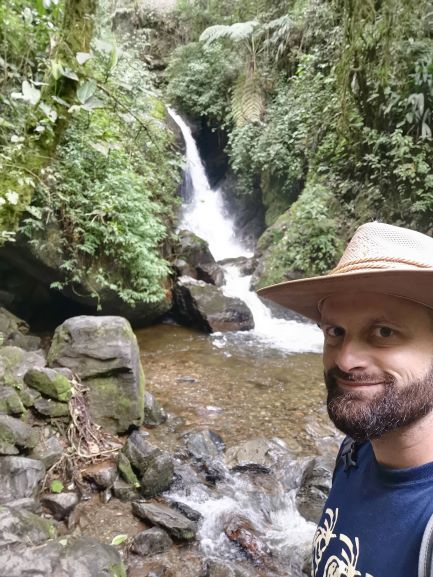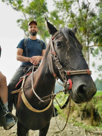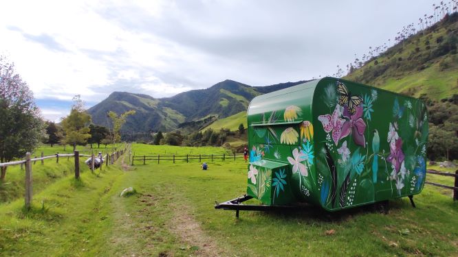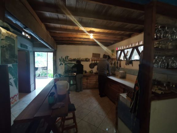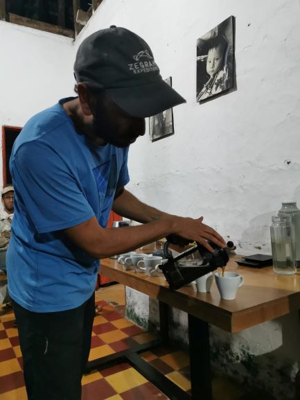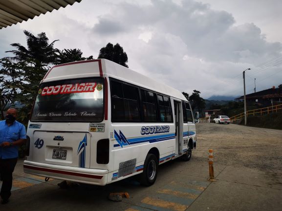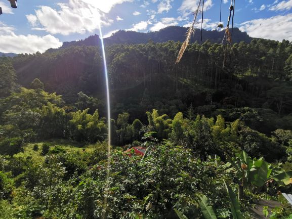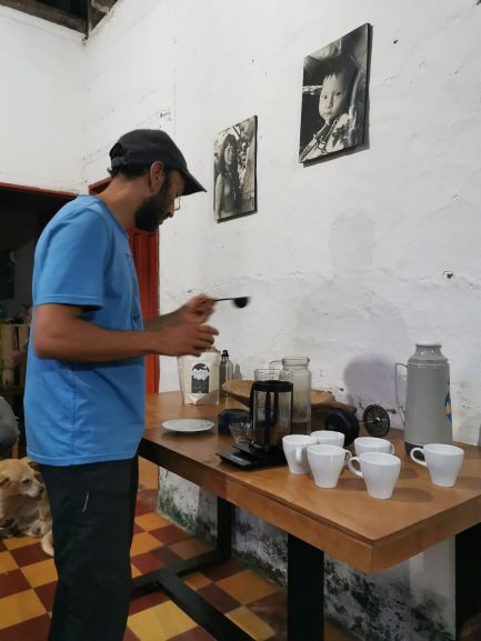 Le lendemain matin, nous repartons pour une journée de transit en direction de Salento. Nous prenons notre dernier petit-déjeuner dans notre super eco-lodge. Notre hôte montre à Ludo comment préparer de succulents arequipe maison. Nos affaires d’hier n’ont forcément pas trop séché, les chaussures et les vestes sont encore bien trempées. Tanpis, ce sera système D, on chausse les tongs à l’allemande pour notre voyage en bus.