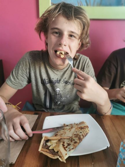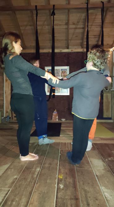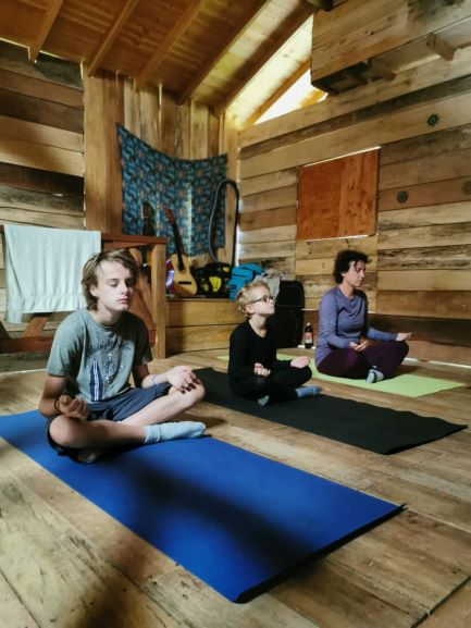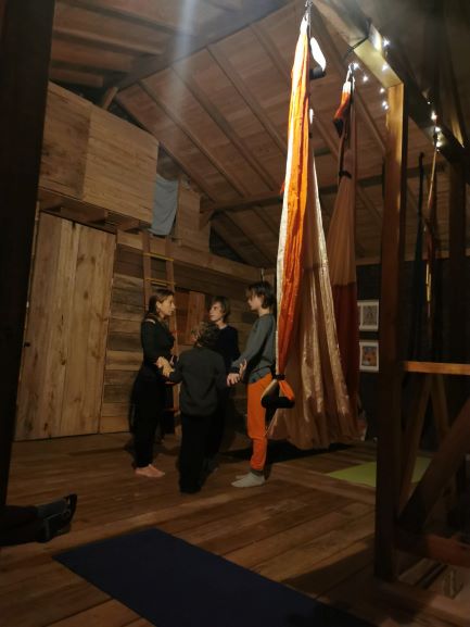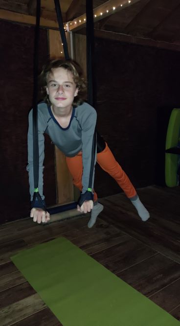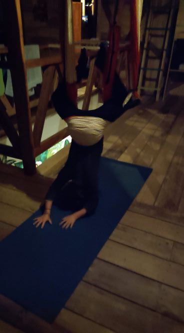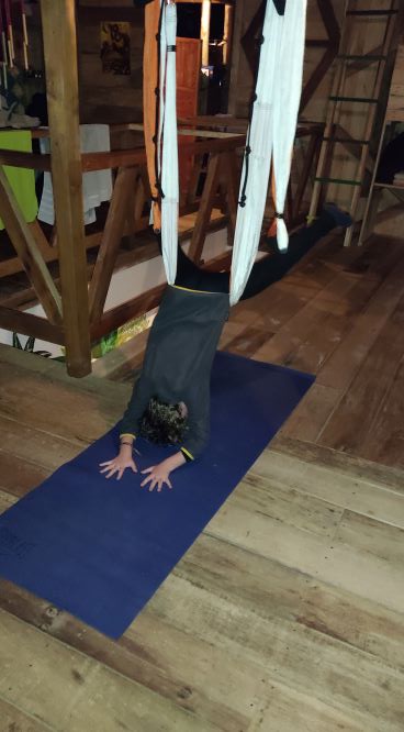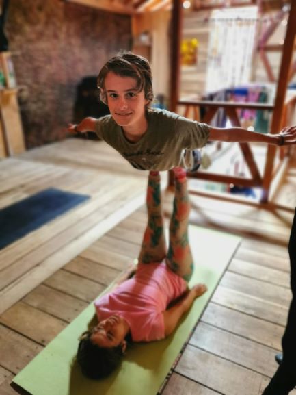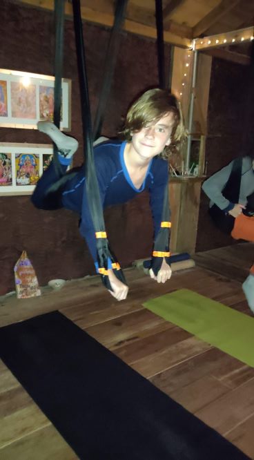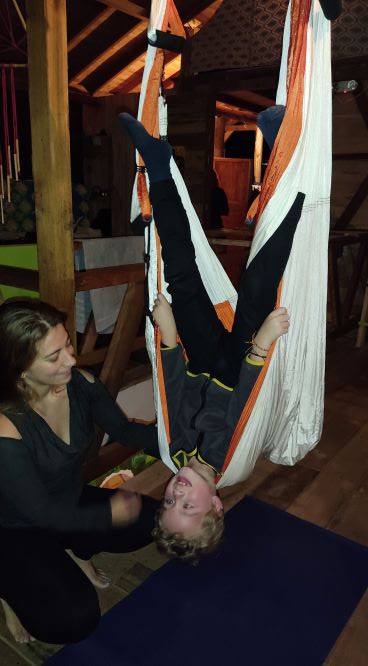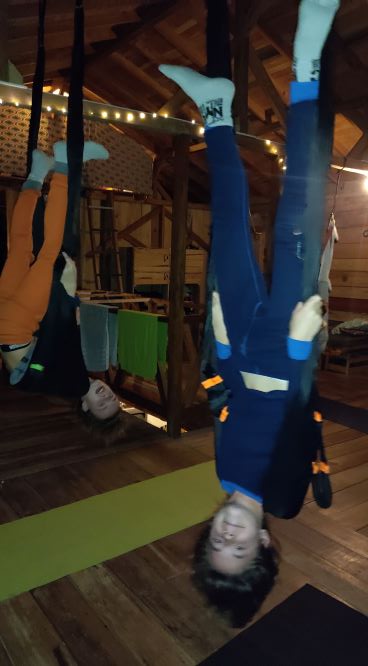 De retour à notre lodge, après une bonne douche pour se décrasser, les enfants ont le plaisir de suivre un cours particulier d’aéro-yoga avec toujours la charmante Paula. Ils sont ravis. Nous dinons ensuite en compagnie de Raoul et Paula et échangeons sur leur vie au Vénézuela, un beau moment de partage.