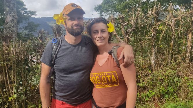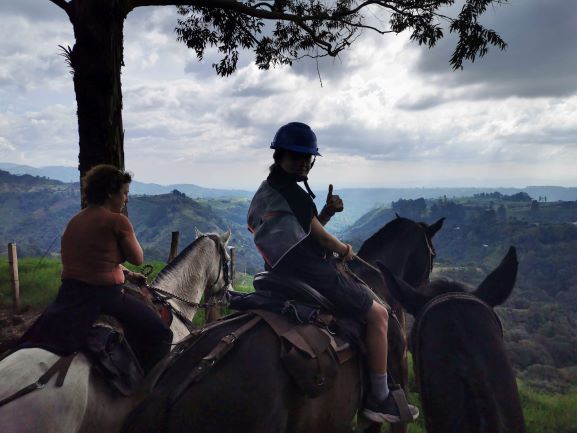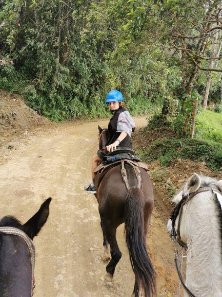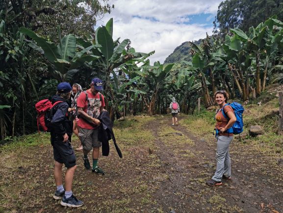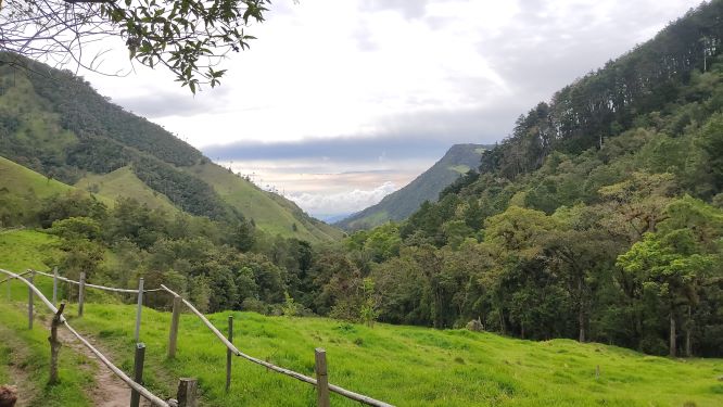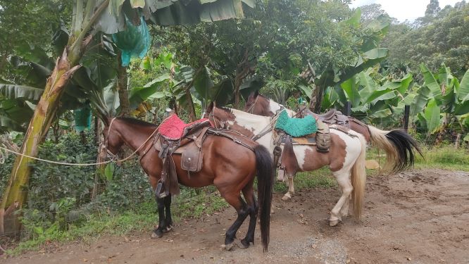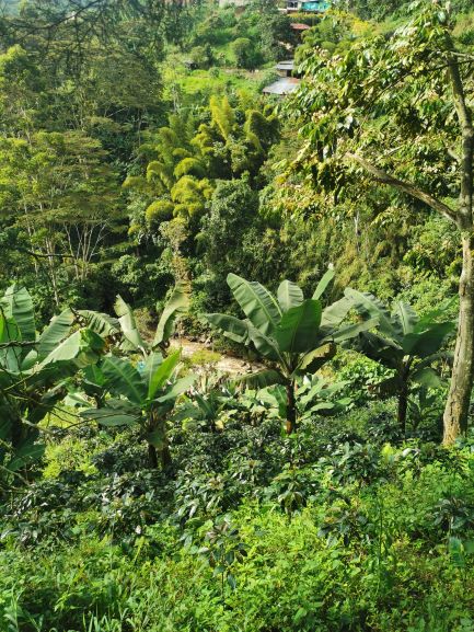 L’après-midi, nous partons pour une petite promenade de 8km autour de Jardin pour prendre un peu de hauteur de l’autre côté du village par rapport à notre lodge. Nous nous enfonçons dans la nature luxuriante et verdoyante (on voit qu’il pleut beaucoup ici :)), découvrons pleins de beaux oiseaux colorés, des plantations de café et de bananiers… Les paysages sont vraiment magnifiques ici.