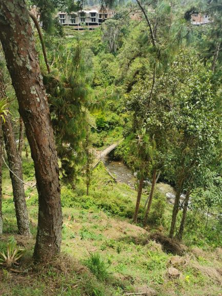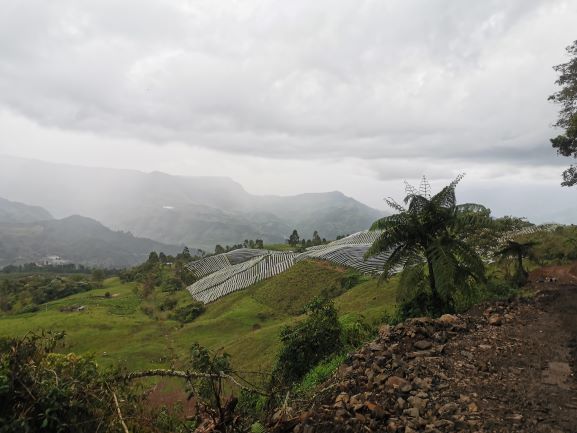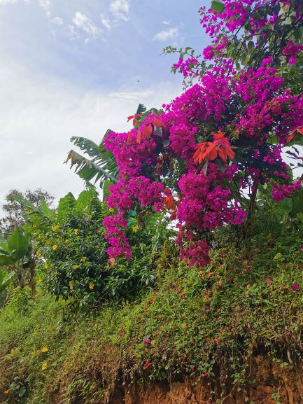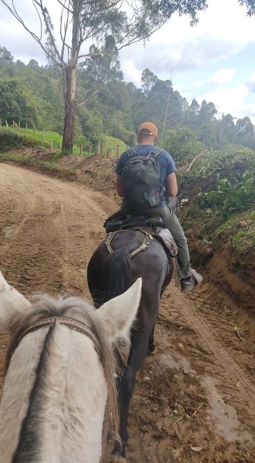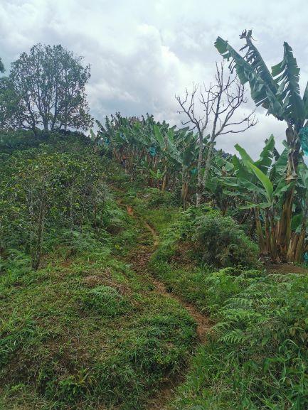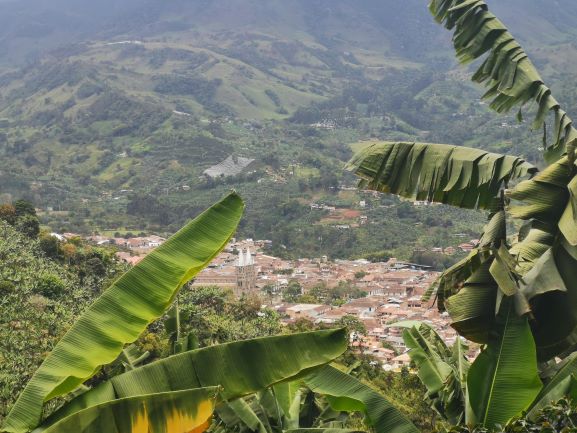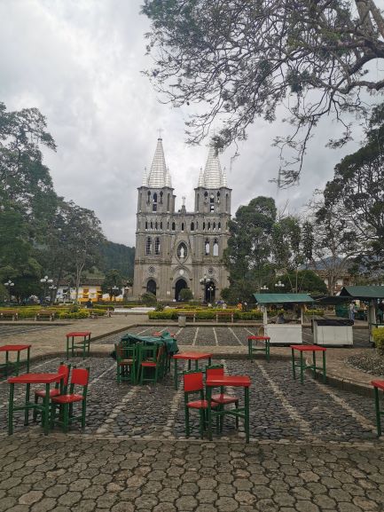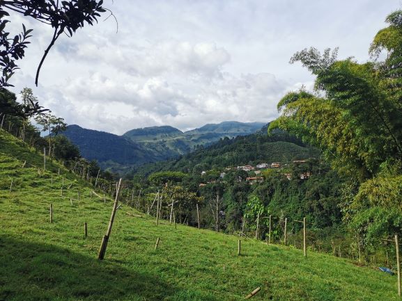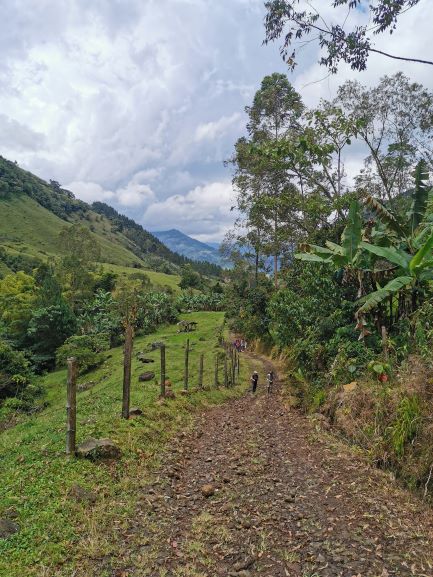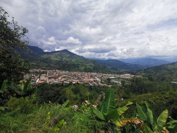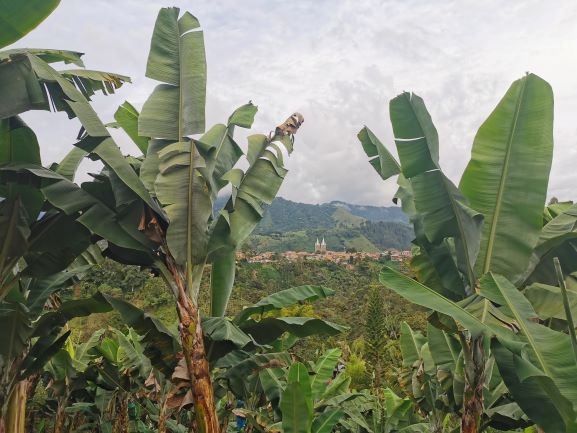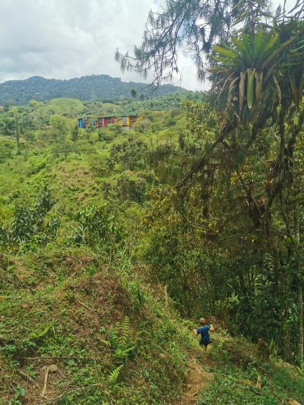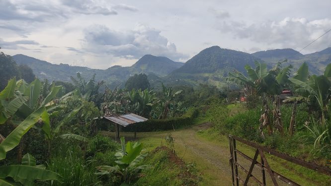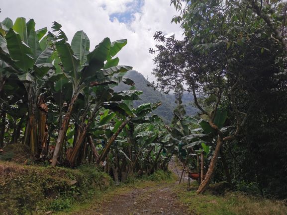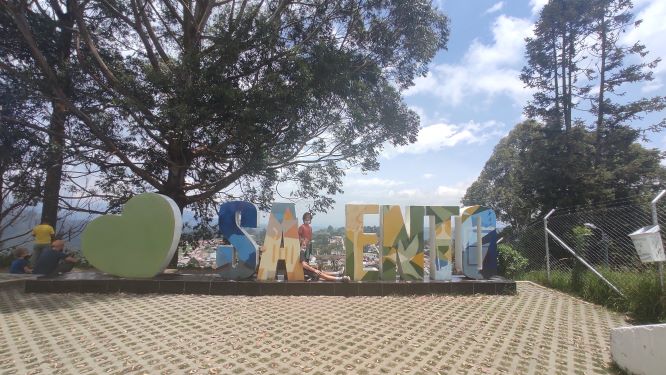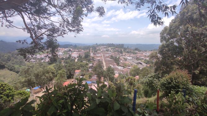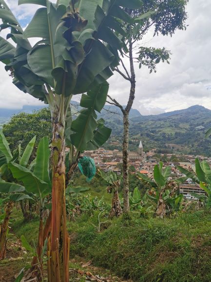 Nous voilà apaisés et bien repus, nous pouvons partir à la découverte de Jardin. Nous partons pour une belle promenade sur les hauteurs du village pour aller voir le mirador près de notre lodge sur lequel se trouve un christ les bras écartés comme à Rio. Puis nous descendons au travers des champs de bananiers dans les chemins boueux pour rejoindre le centre de Jardin.