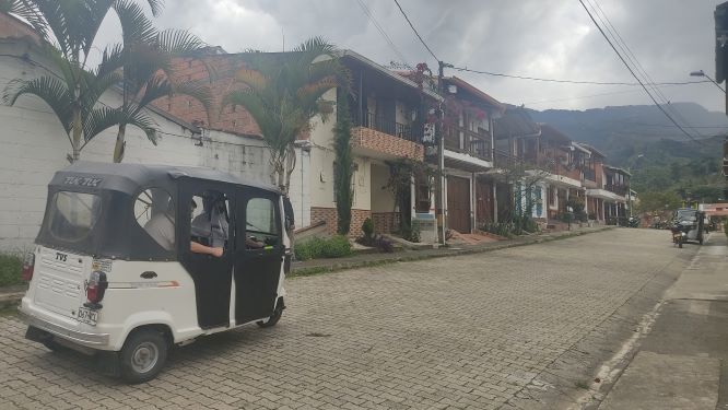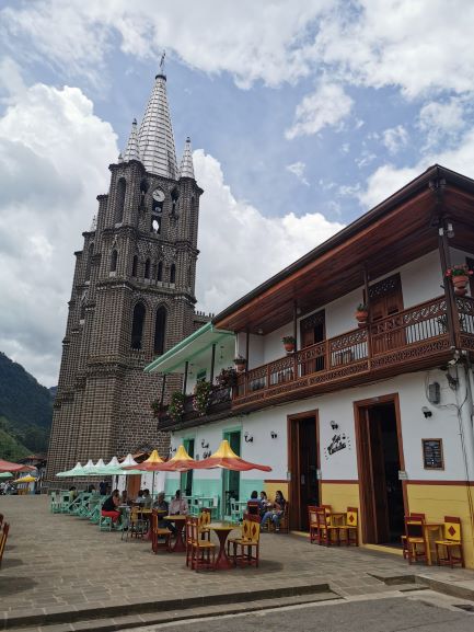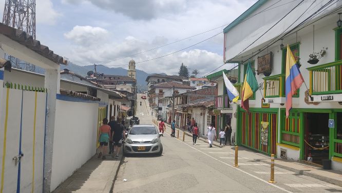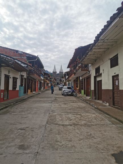 Nous arrivons au village et flânons dans les ruelles. Comme beaucoup de villages colombiens, nous retrouvons l’empreinte de l’architecture coloniale espagnole avec ses maisons à la chaux blanche. Nous nous arrêtons déjeuner dans une crêperie, tenue par une colombienne qui a vécu 20 ans à Paris et qui a ramené comme elle le dit un peu de la France avec elle.