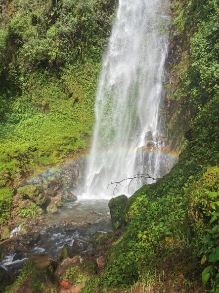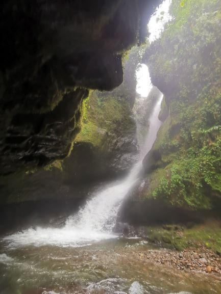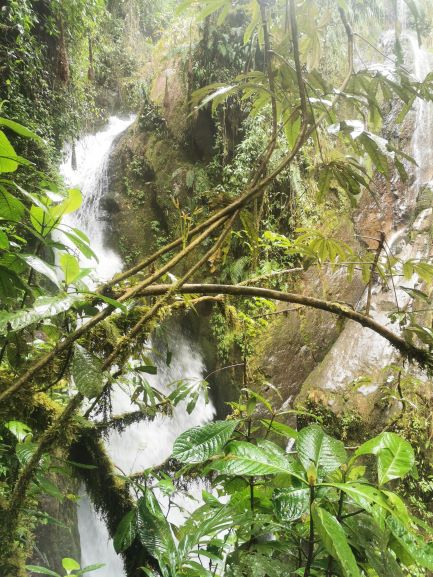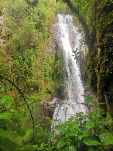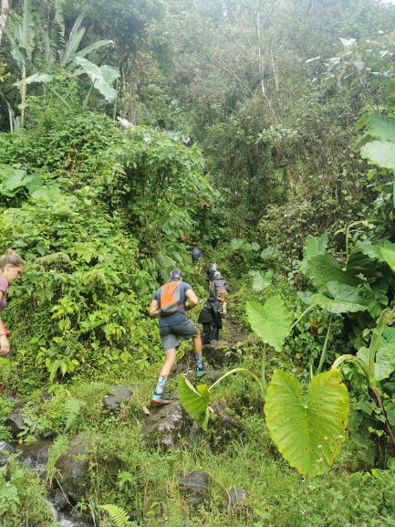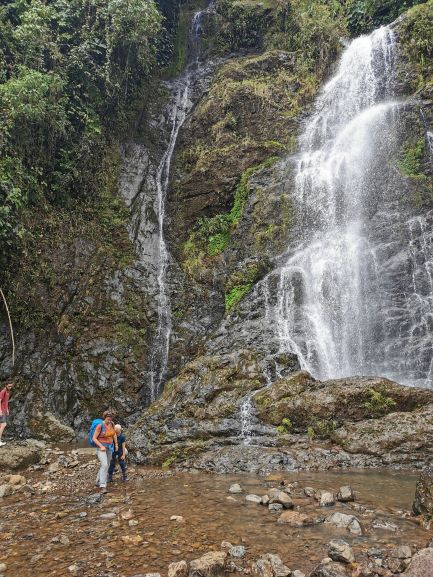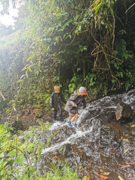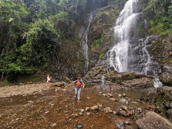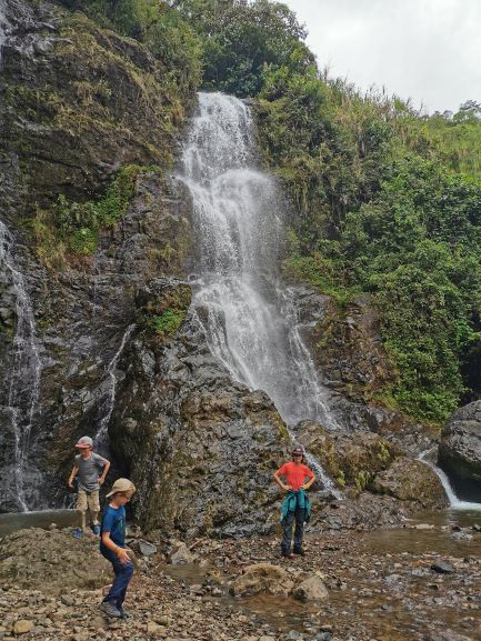 Le lendemain matin, le rendez-vous est donné : 10h, nos amis nous rejoignent à l’auberge pour une randonnée annoncée de 6 heures aller-retour pour voir les 3 cascades. On nous a prévenu : ça grimpe un peu, c’est un peu humide, on peut potentiellement rentrés sales 🙂