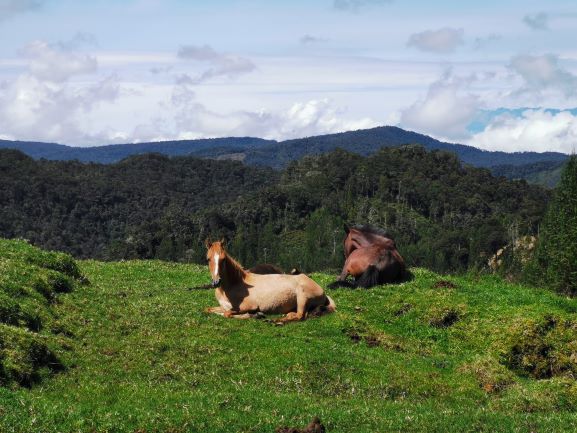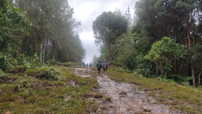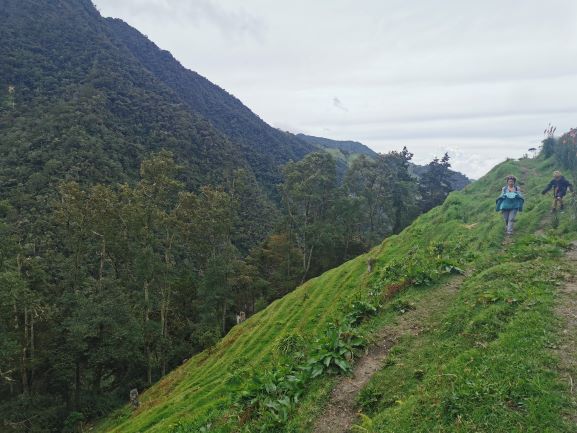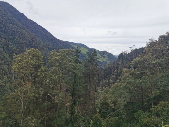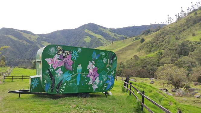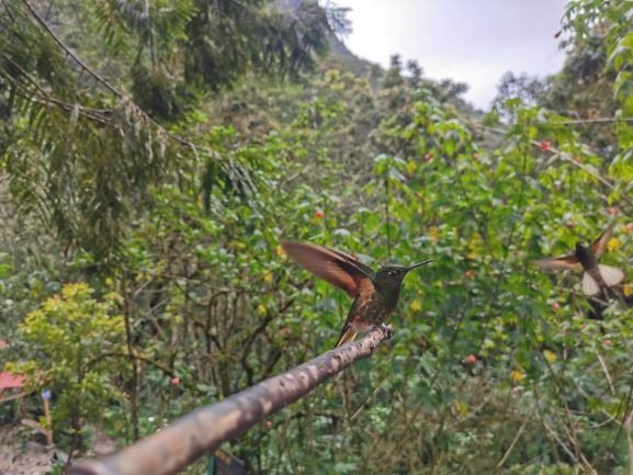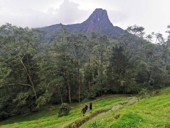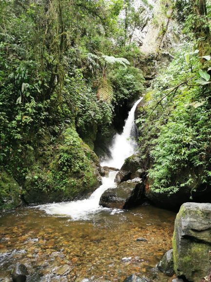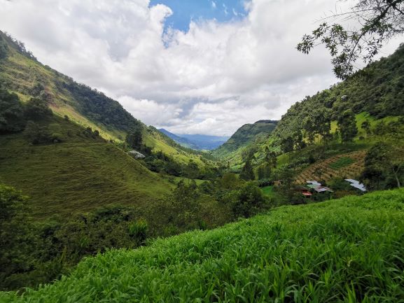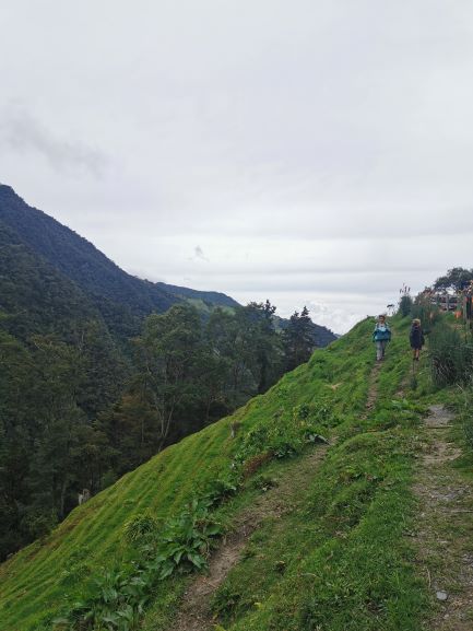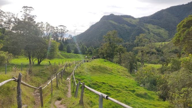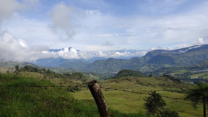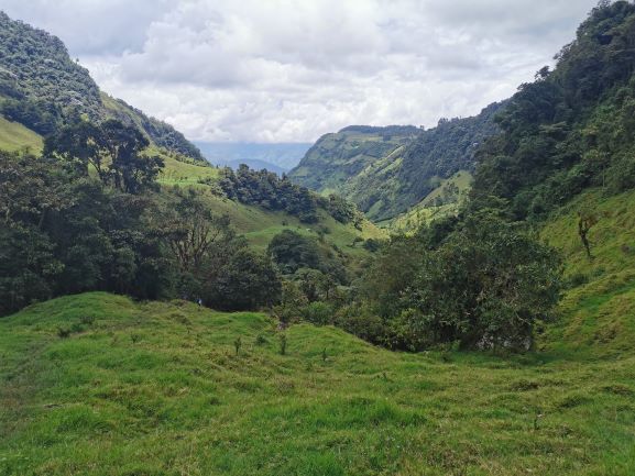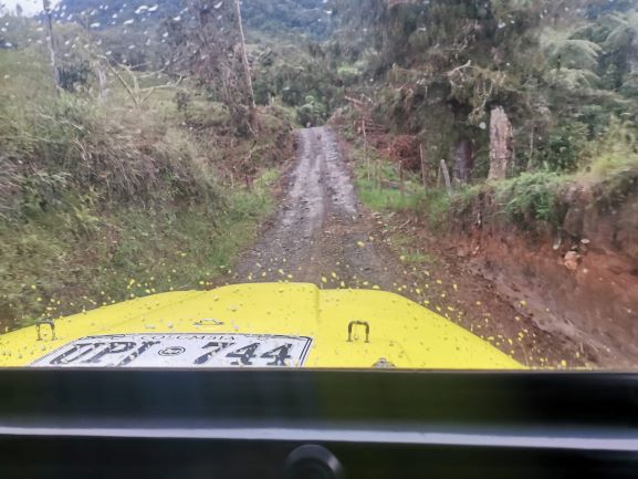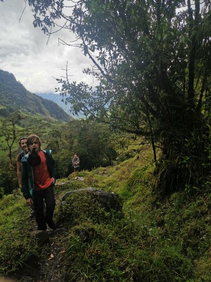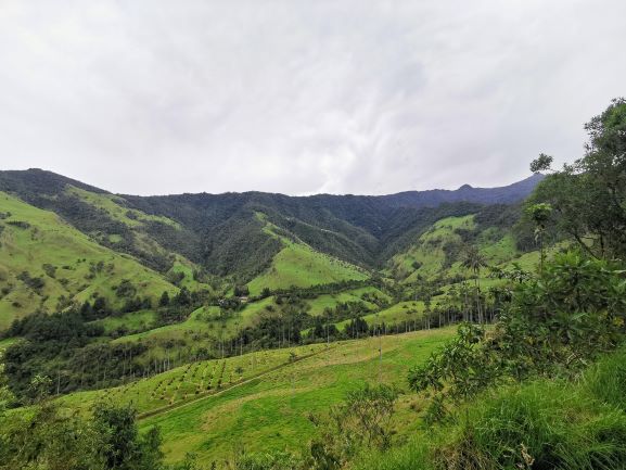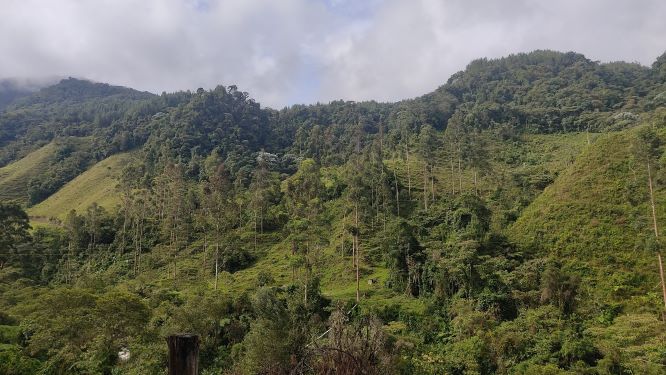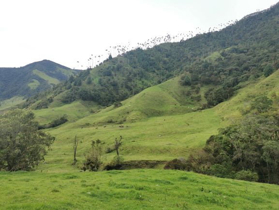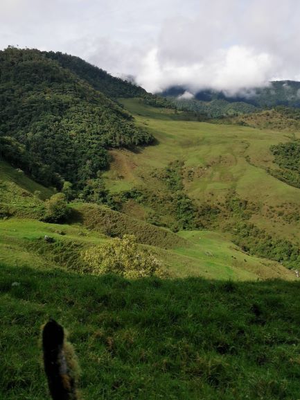 Nous prenons une jeep pour aller sur le site où commence la randonnée. Nous commençons à grimper sur les hauteurs. Le ciel est dégagé, rare dans cette région. laissant profiter du paysage magnifique avec ses montagnes recouvertes d’un tapis vert éclatant, ses palmiers semblant vouloir toucher le ciel et ses condors tournoyant dans les airs… La ballade est plutôt facile (forcément après celle de Jardin, tout nous parait facile). La végétation change au fur et à mesure que l’on prend de l’altitude. Nous montons jusqu’à presque 3000m, les forêts de conifères commencent à apparaitre. Il y a également des centaines d’oiseaux à observer ou chercher, avec de belles couleurs rouge, jaune, vert…