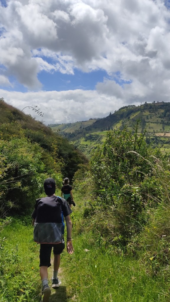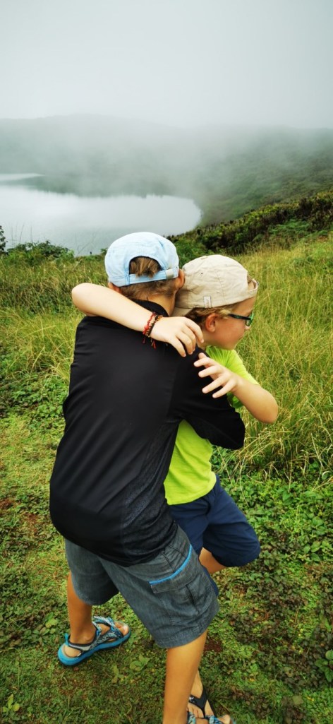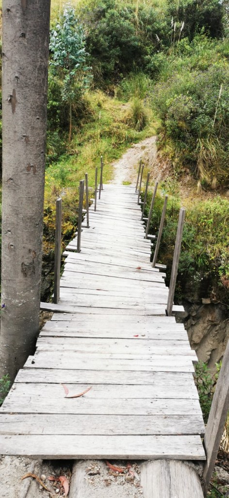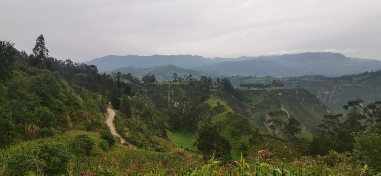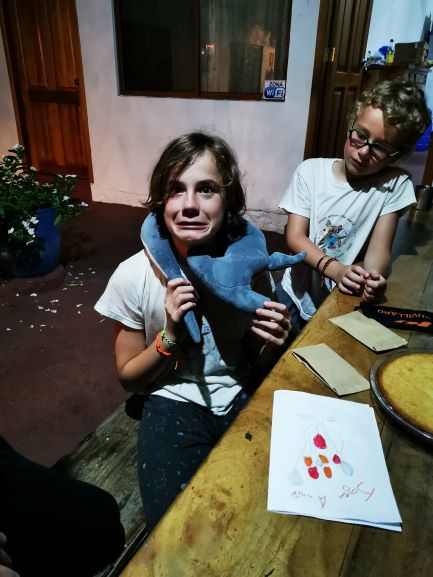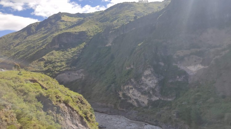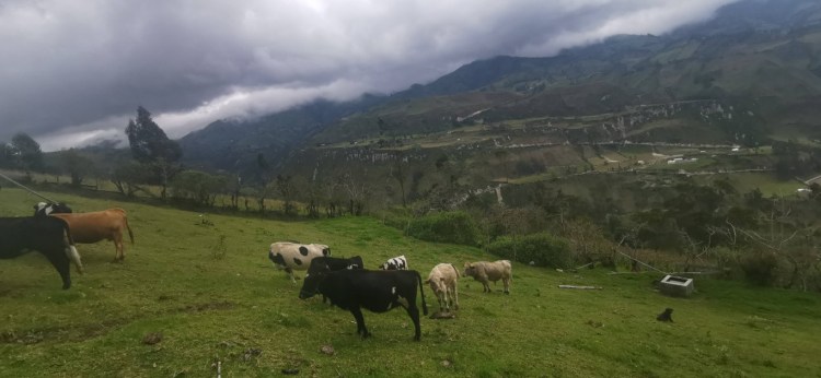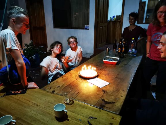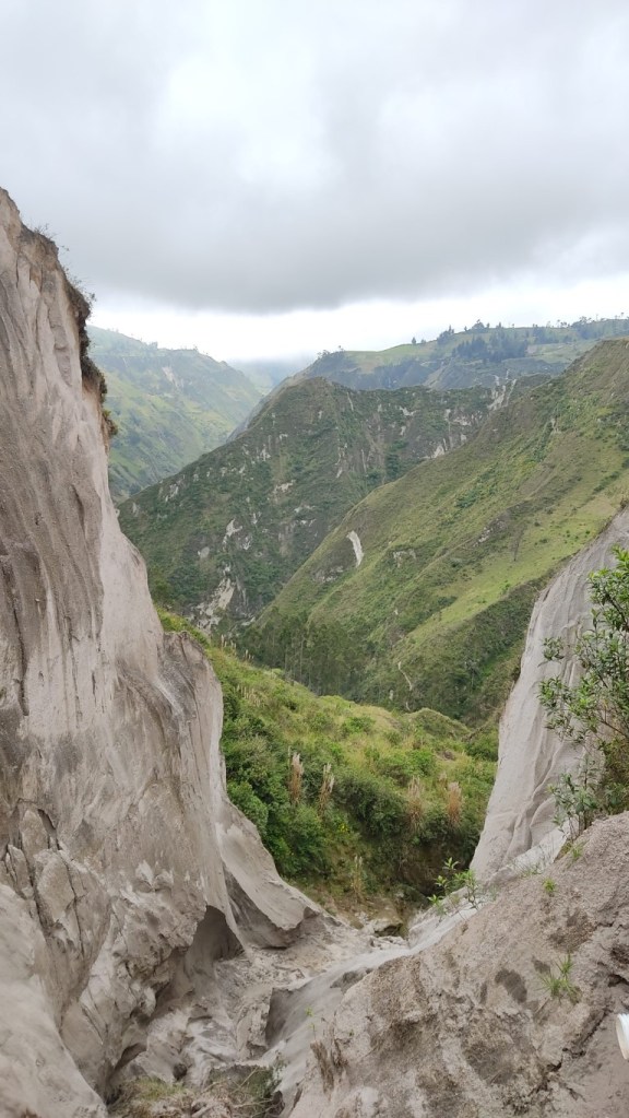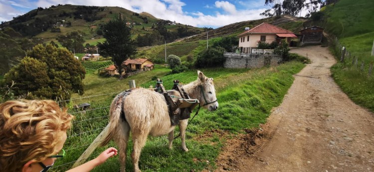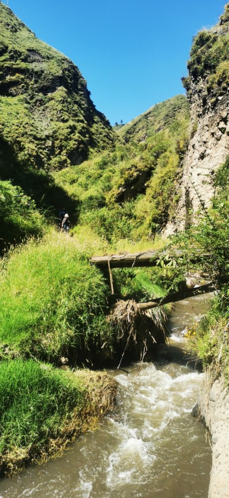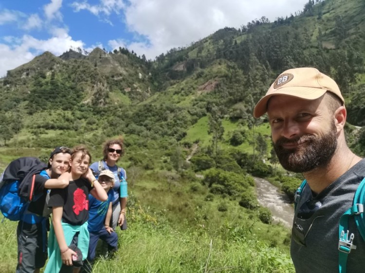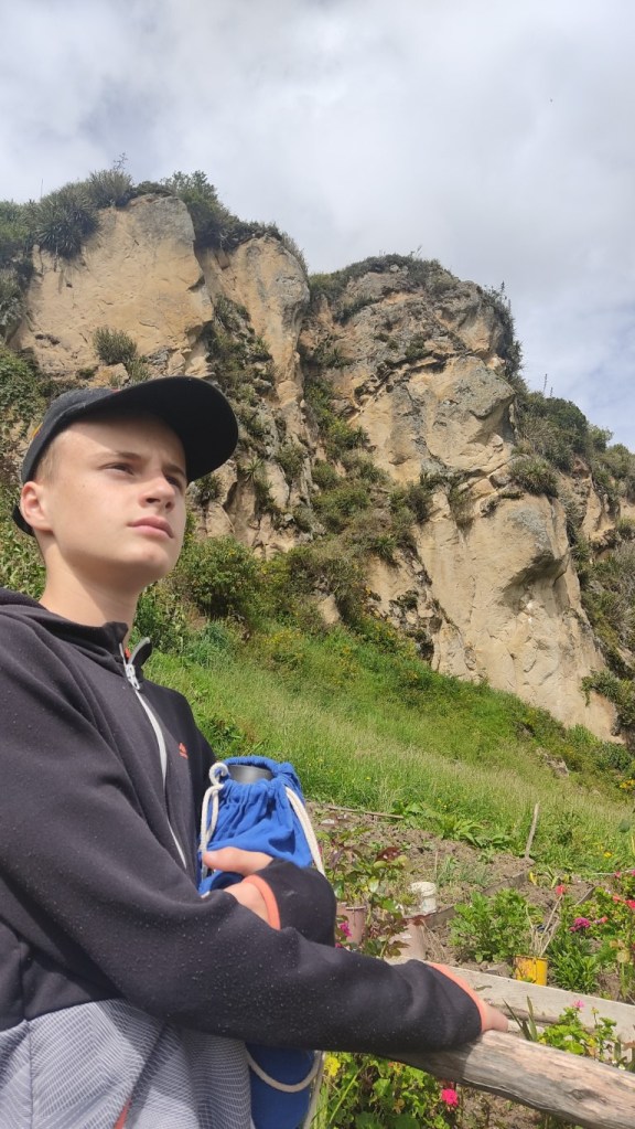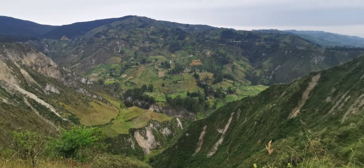 Le lendemain matin, nous décidons de faire le tour des miradors du village sur le canyon. Les deux chiens du propriétaire ont décidé de nous suivre dans notre ballade, pour le plus grand bonheur des enfants. Nous rejoignons donc deux premiers miradors en bordure du village, nous prenons quelques photos puis décidons de continuer sur le chemin du trek qui descend tout au fond du canyon. Pour le coup, c’est une autre partie de plaisir… Ludo avec son vertige préfère avancer vite jusqu’au prochain mirador et nous laisse Louis et moi à la traine. Hugo et Malo suivent leur père facilement avec les 2 chiens vu qu’ils n’ont pas de vertige. J’emmène pas large et je constate que Louis prend énormément sur lui pour avancer à bonne allure sur le chemin. Avant le tour du monde, il serait resté prostré quelque part pour ne plus avancer, qu’est-ce qu’il a progressé sur ce point, je suis fière de lui. Les chiens ne nous facilitent pas la tâche. Un troupeau de moutons paissaient tranquillement sur les flans très raides de la montagne. Ils ont décidé de les pourchasser. Du coup, on se retrouve à croiser sur ce chemin escarpé des moutons apeurés et des chiens excités… Bref ils nous font de bonne frayeur. Nous nous arrêtons à un dernier point de vue donnant un autre angle sur le canyon : nous faisons quelques photos, Ludo fait voler son drone puis nous rebroussons chemin rapidement pour retrouver des terres plus sûre. Nous rentrons toujours avec les chiens (bien qu’on a vraiment failli les perdre dans la montagne avec ces moutons) à l’auberge pour le déjeuner.