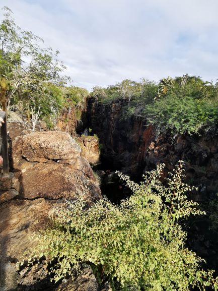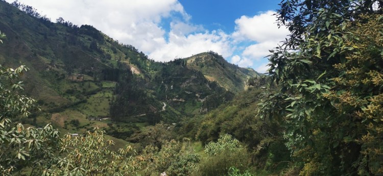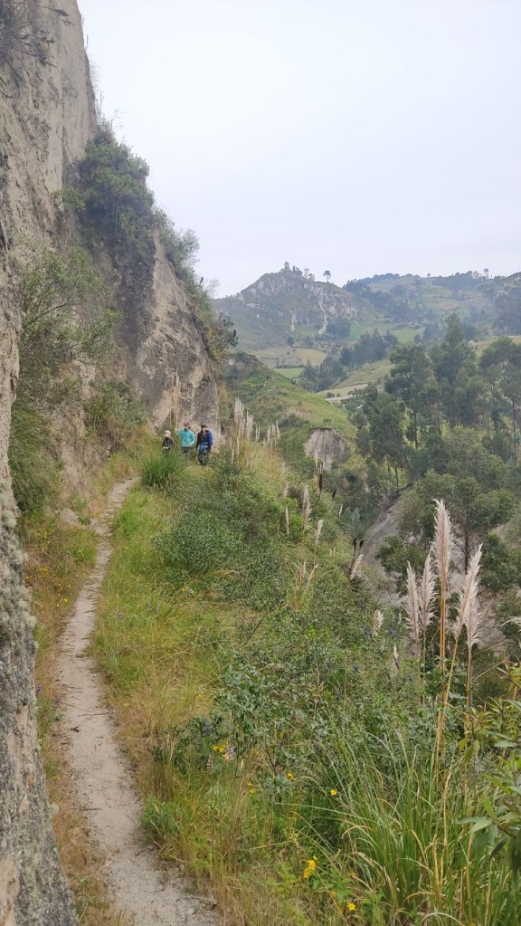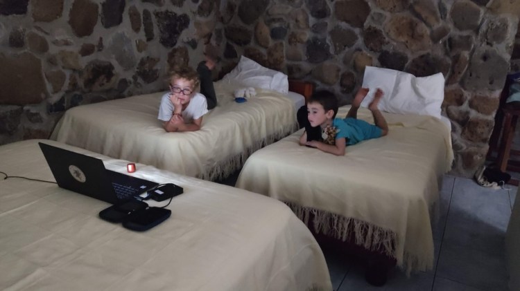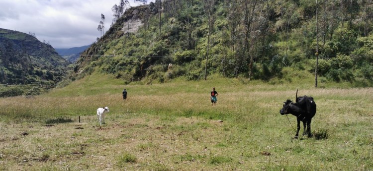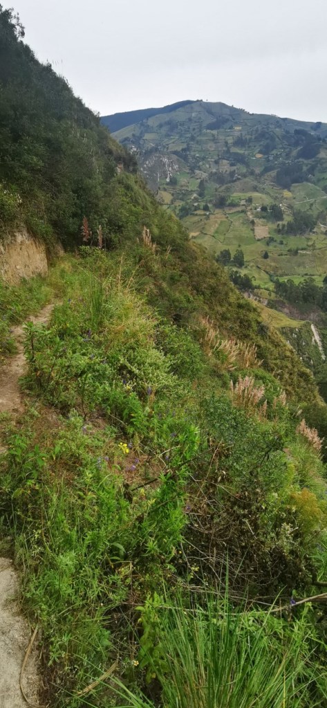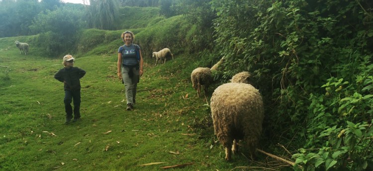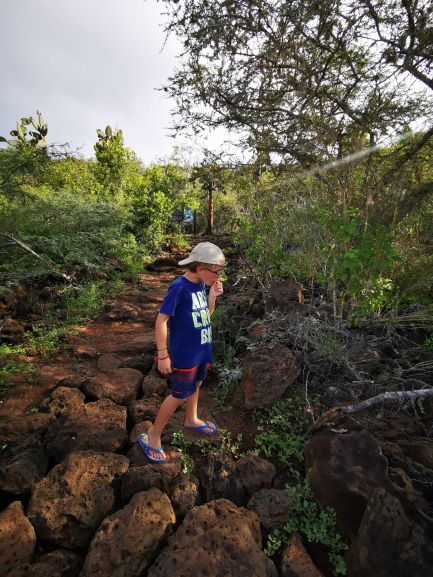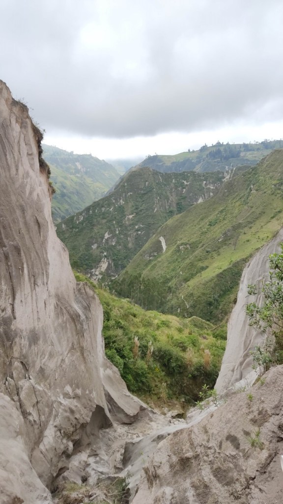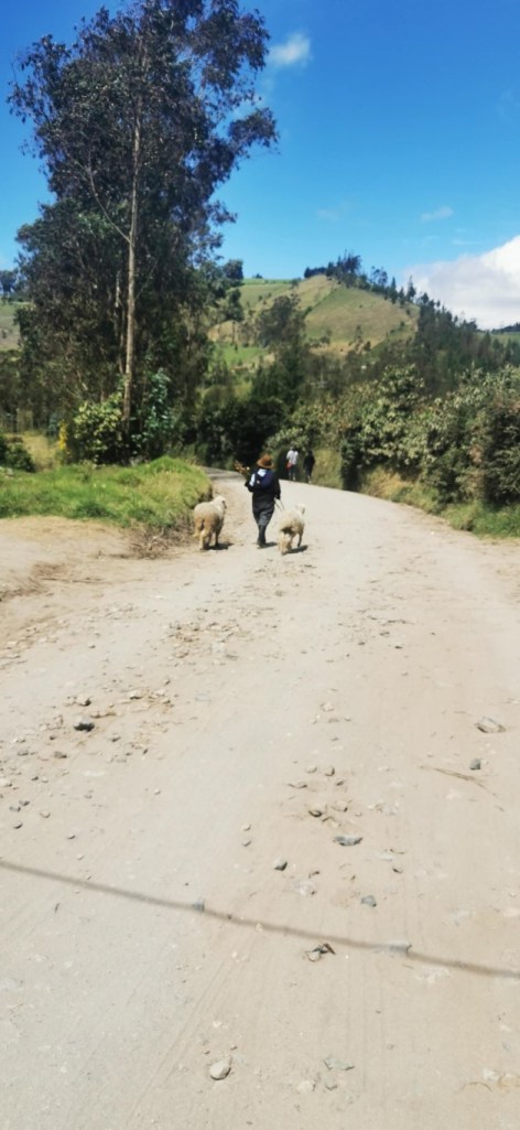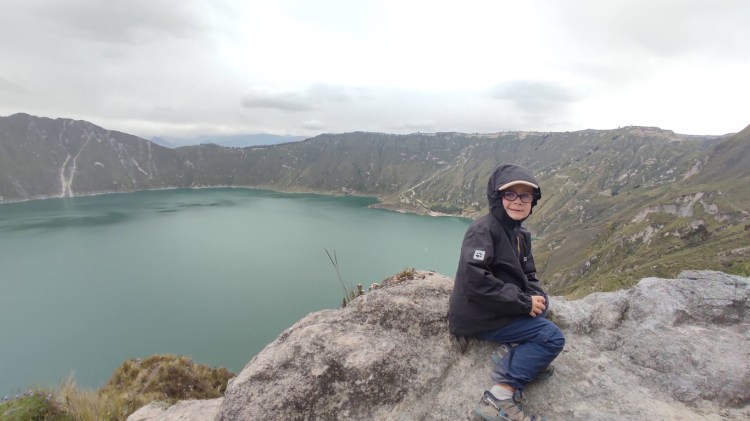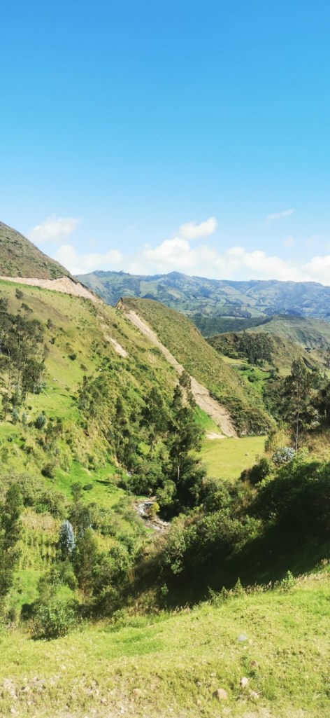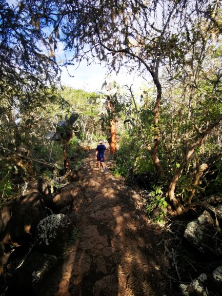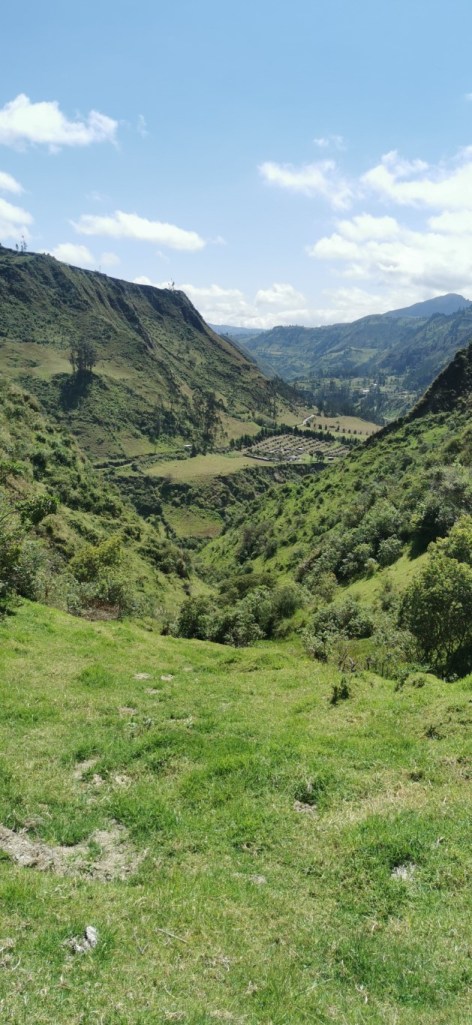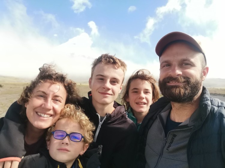 Le lendemain matin, nous décidons de faire le tour des miradors du village sur le canyon. Les deux chiens du propriétaire ont décidé de nous suivre dans notre ballade, pour le plus grand bonheur des enfants. Nous rejoignons donc deux premiers miradors en bordure du village, nous prenons quelques photos puis décidons de continuer sur le chemin du trek qui descend tout au fond du canyon. Pour le coup, c’est une autre partie de plaisir… Ludo avec son vertige préfère avancer vite jusqu’au prochain mirador et nous laisse Louis et moi à la traine. Hugo et Malo suivent leur père facilement avec les 2 chiens vu qu’ils n’ont pas de vertige. J’emmène pas large et je constate que Louis prend énormément sur lui pour avancer à bonne allure sur le chemin. Avant le tour du monde, il serait resté prostré quelque part pour ne plus avancer, qu’est-ce qu’il a progressé sur ce point, je suis fière de lui. Les chiens ne nous facilitent pas la tâche. Un troupeau de moutons paissaient tranquillement sur les flans très raides de la montagne. Ils ont décidé de les pourchasser. Du coup, on se retrouve à croiser sur ce chemin escarpé des moutons apeurés et des chiens excités… Bref ils nous font de bonne frayeur. Nous nous arrêtons à un dernier point de vue donnant un autre angle sur le canyon : nous faisons quelques photos, Ludo fait voler son drone puis nous rebroussons chemin rapidement pour retrouver des terres plus sûre. Nous rentrons toujours avec les chiens (bien qu’on a vraiment failli les perdre dans la montagne avec ces moutons) à l’auberge pour le déjeuner.