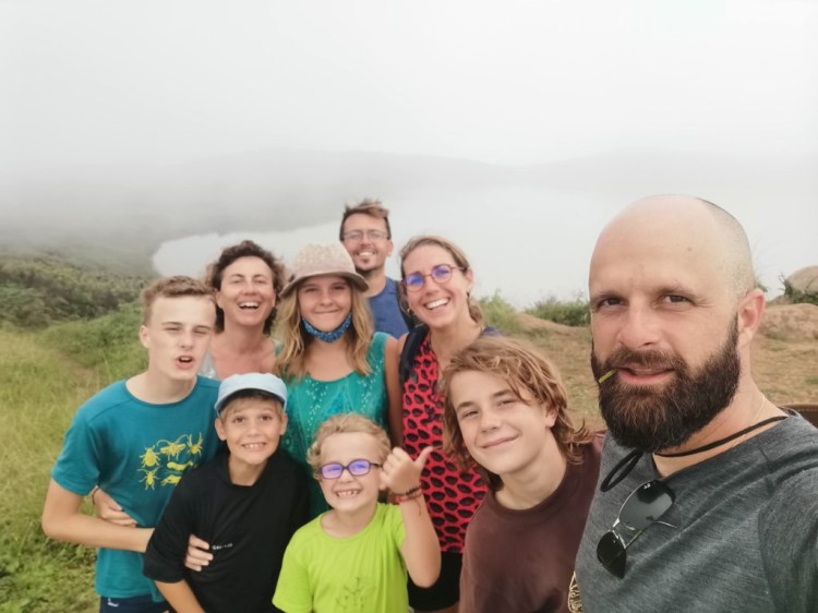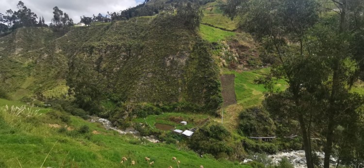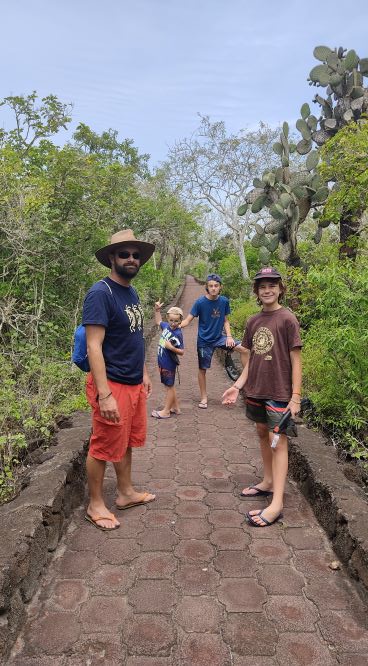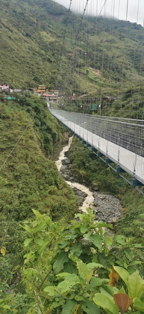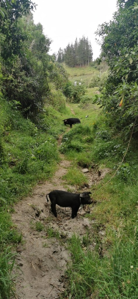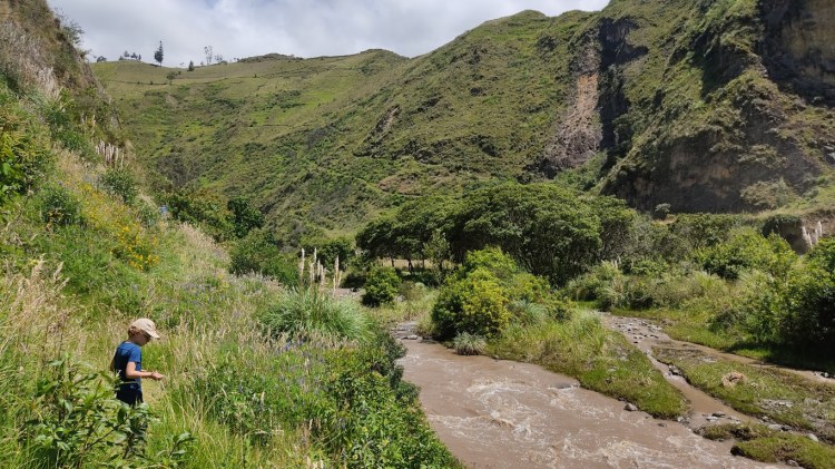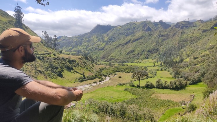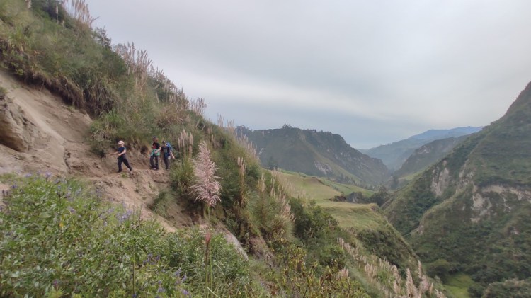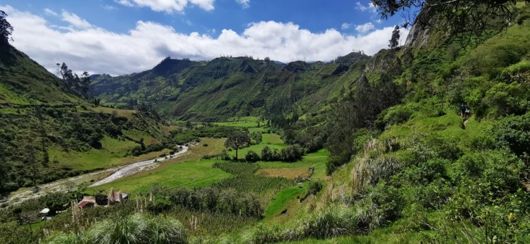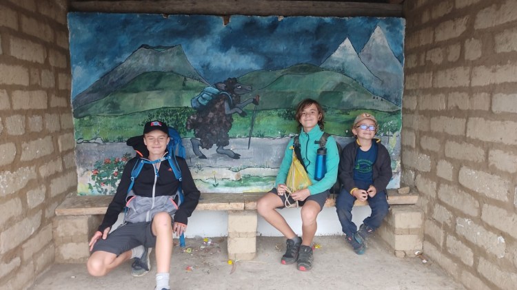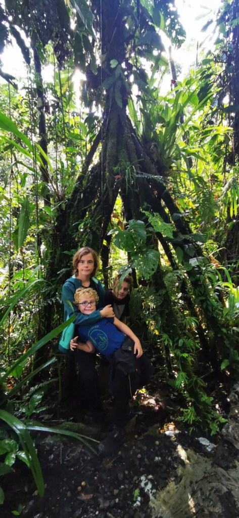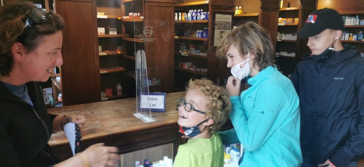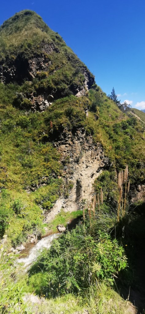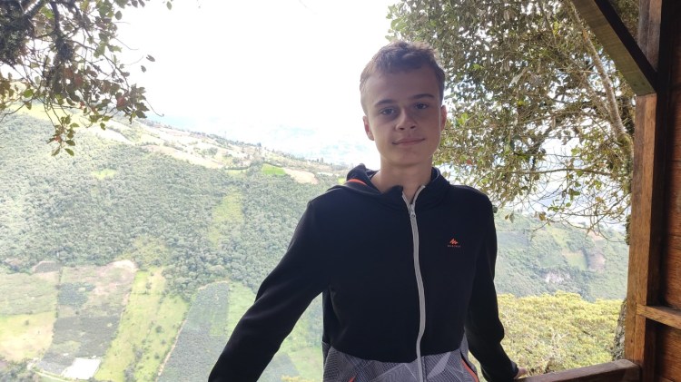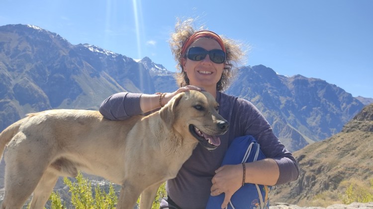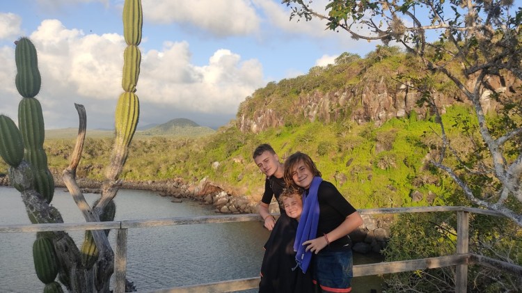 Le lendemain matin, nous décidons de faire le tour des miradors du village sur le canyon. Les deux chiens du propriétaire ont décidé de nous suivre dans notre ballade, pour le plus grand bonheur des enfants. Nous rejoignons donc deux premiers miradors en bordure du village, nous prenons quelques photos puis décidons de continuer sur le chemin du trek qui descend tout au fond du canyon. Pour le coup, c’est une autre partie de plaisir… Ludo avec son vertige préfère avancer vite jusqu’au prochain mirador et nous laisse Louis et moi à la traine. Hugo et Malo suivent leur père facilement avec les 2 chiens vu qu’ils n’ont pas de vertige. J’emmène pas large et je constate que Louis prend énormément sur lui pour avancer à bonne allure sur le chemin. Avant le tour du monde, il serait resté prostré quelque part pour ne plus avancer, qu’est-ce qu’il a progressé sur ce point, je suis fière de lui. Les chiens ne nous facilitent pas la tâche. Un troupeau de moutons paissaient tranquillement sur les flans très raides de la montagne. Ils ont décidé de les pourchasser. Du coup, on se retrouve à croiser sur ce chemin escarpé des moutons apeurés et des chiens excités… Bref ils nous font de bonne frayeur. Nous nous arrêtons à un dernier point de vue donnant un autre angle sur le canyon : nous faisons quelques photos, Ludo fait voler son drone puis nous rebroussons chemin rapidement pour retrouver des terres plus sûre. Nous rentrons toujours avec les chiens (bien qu’on a vraiment failli les perdre dans la montagne avec ces moutons) à l’auberge pour le déjeuner.