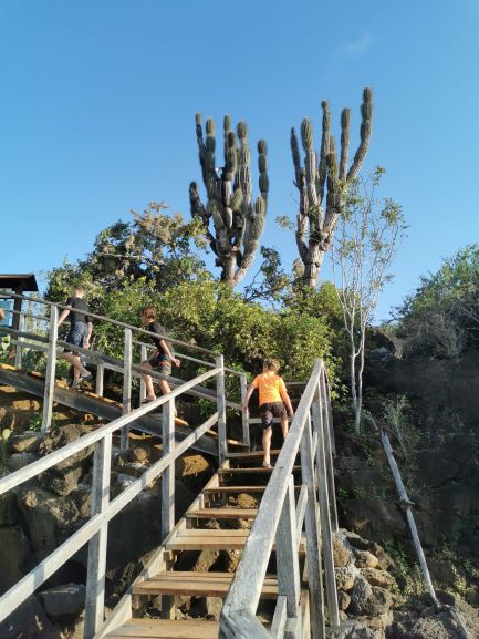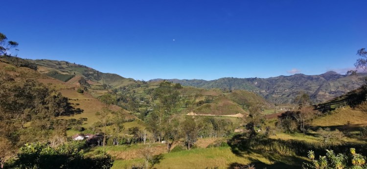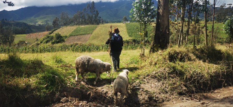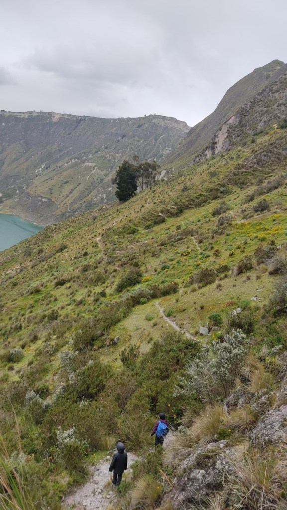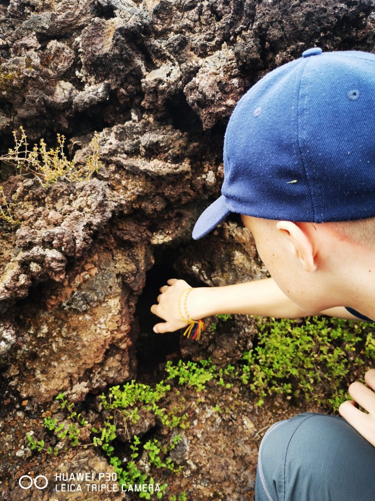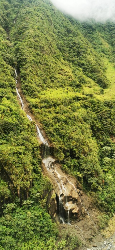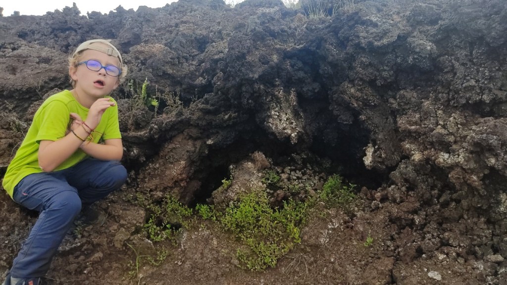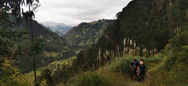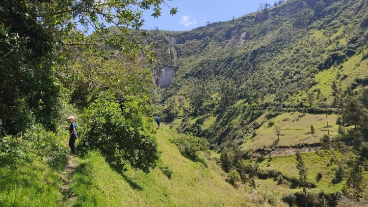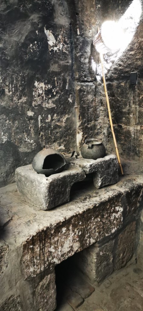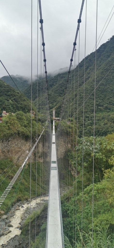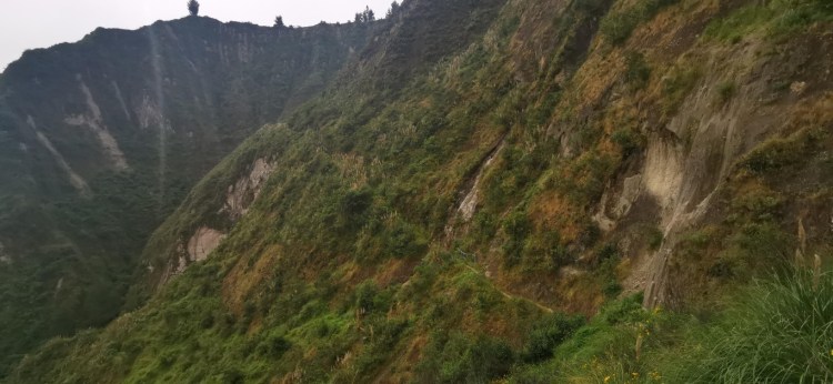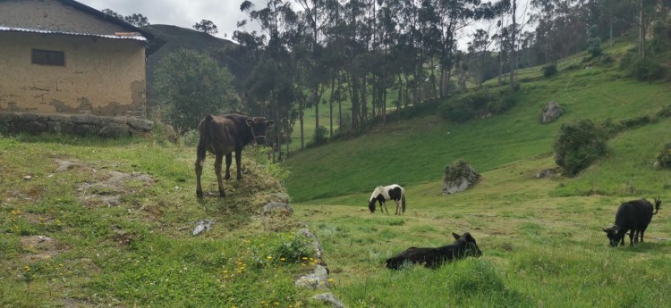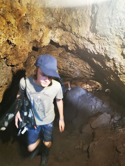 Le lendemain matin, nous décidons de faire le tour des miradors du village sur le canyon. Les deux chiens du propriétaire ont décidé de nous suivre dans notre ballade, pour le plus grand bonheur des enfants. Nous rejoignons donc deux premiers miradors en bordure du village, nous prenons quelques photos puis décidons de continuer sur le chemin du trek qui descend tout au fond du canyon. Pour le coup, c’est une autre partie de plaisir… Ludo avec son vertige préfère avancer vite jusqu’au prochain mirador et nous laisse Louis et moi à la traine. Hugo et Malo suivent leur père facilement avec les 2 chiens vu qu’ils n’ont pas de vertige. J’emmène pas large et je constate que Louis prend énormément sur lui pour avancer à bonne allure sur le chemin. Avant le tour du monde, il serait resté prostré quelque part pour ne plus avancer, qu’est-ce qu’il a progressé sur ce point, je suis fière de lui. Les chiens ne nous facilitent pas la tâche. Un troupeau de moutons paissaient tranquillement sur les flans très raides de la montagne. Ils ont décidé de les pourchasser. Du coup, on se retrouve à croiser sur ce chemin escarpé des moutons apeurés et des chiens excités… Bref ils nous font de bonne frayeur. Nous nous arrêtons à un dernier point de vue donnant un autre angle sur le canyon : nous faisons quelques photos, Ludo fait voler son drone puis nous rebroussons chemin rapidement pour retrouver des terres plus sûre. Nous rentrons toujours avec les chiens (bien qu’on a vraiment failli les perdre dans la montagne avec ces moutons) à l’auberge pour le déjeuner.