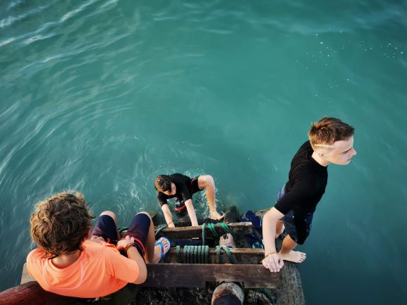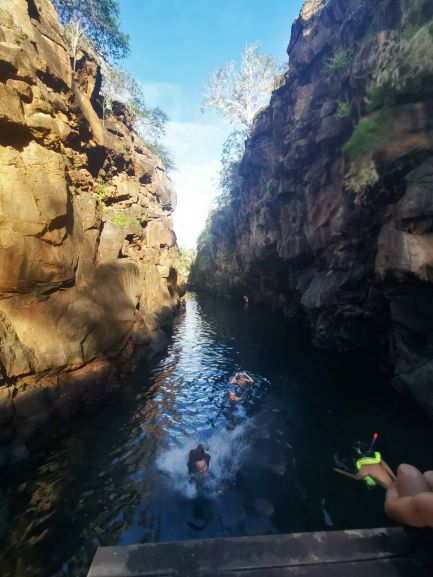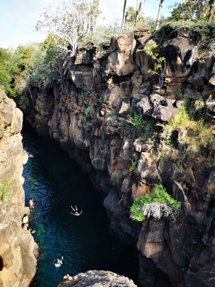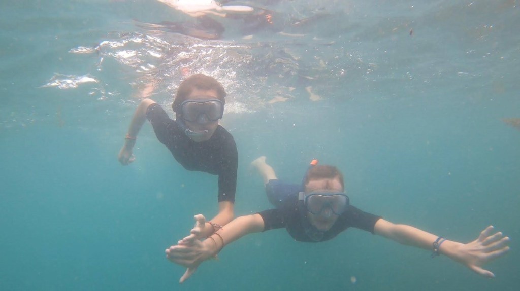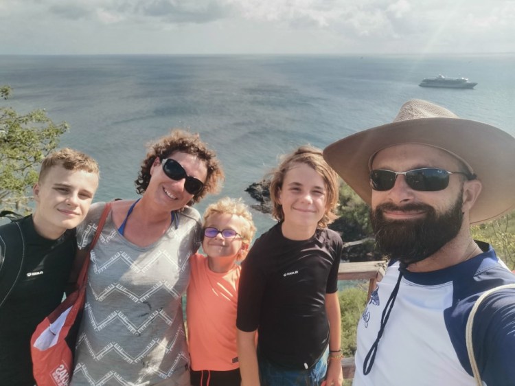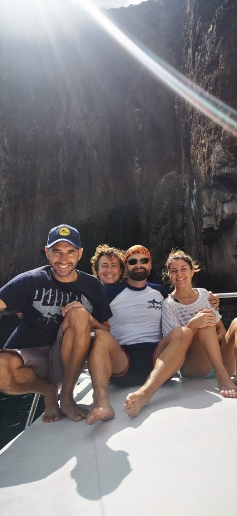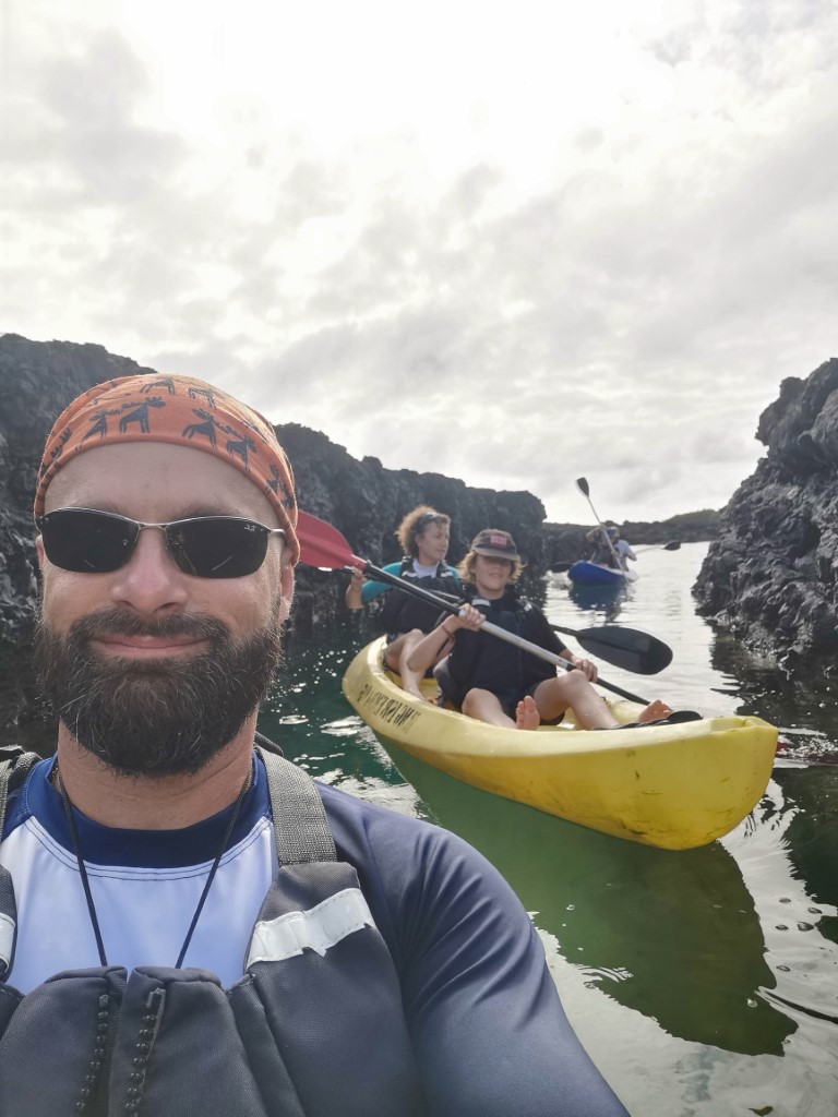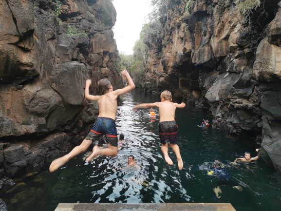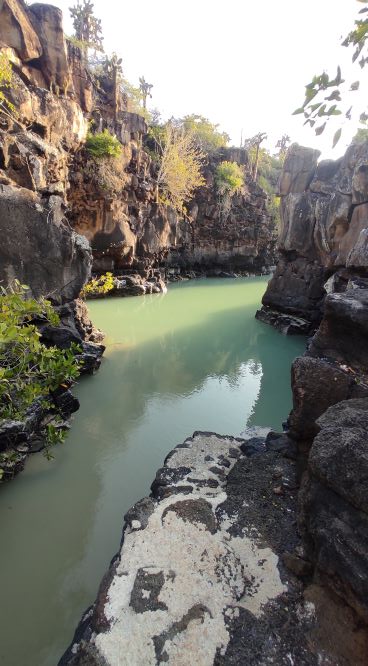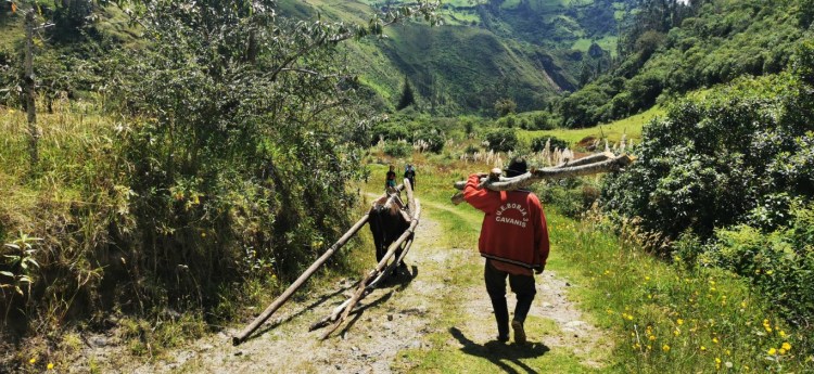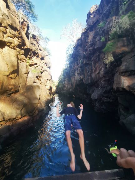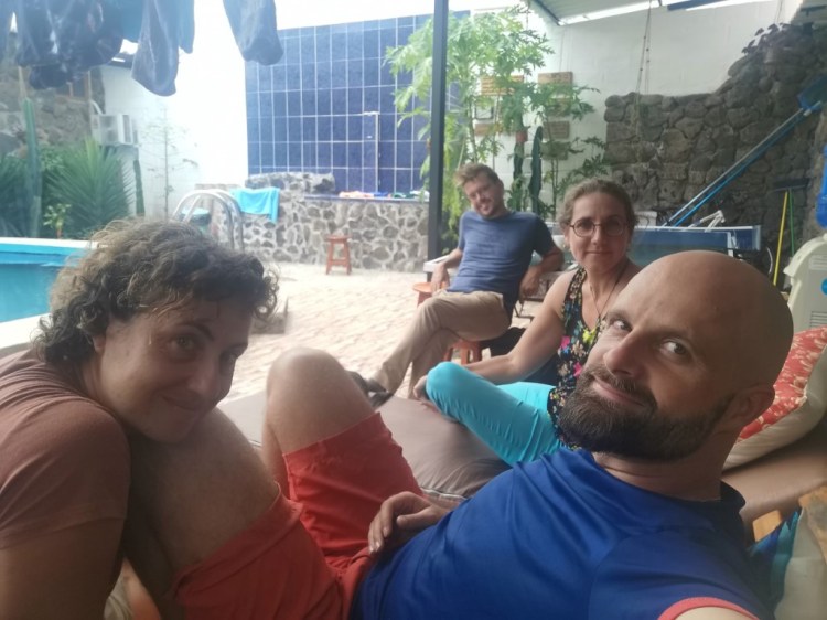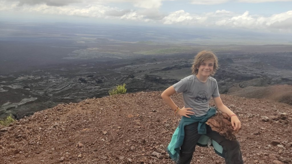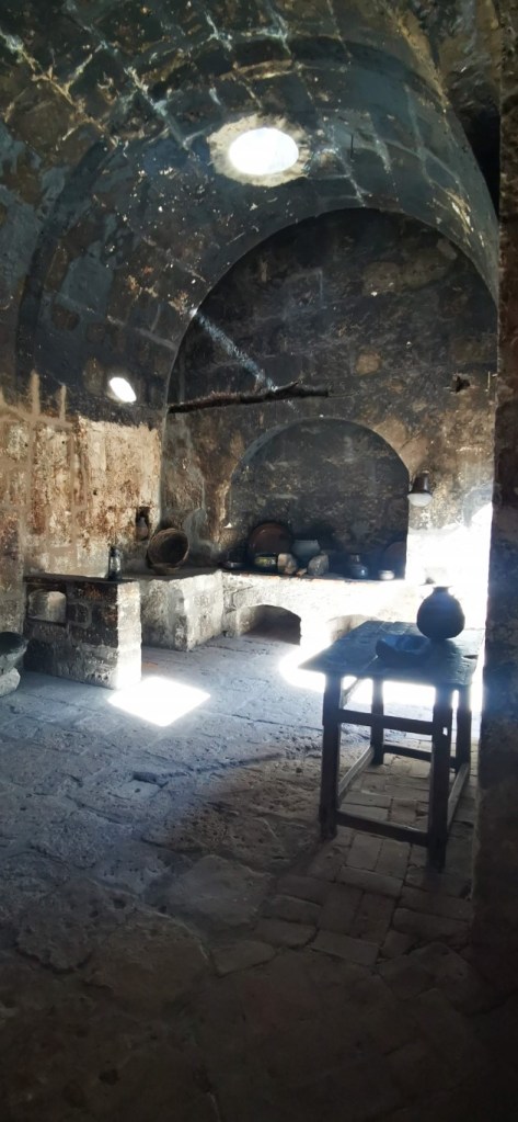Le lendemain matin, nous décidons de faire le tour des miradors du village sur le canyon. Les deux chiens du propriétaire ont décidé de nous suivre dans notre ballade, pour le plus grand bonheur des enfants. Nous rejoignons donc deux premiers miradors en bordure du village, nous prenons quelques photos puis décidons de continuer sur le chemin du trek qui descend tout au fond du canyon. Pour le coup, c’est une autre partie de plaisir… Ludo avec son vertige préfère avancer vite jusqu’au prochain mirador et nous laisse Louis et moi à la traine. Hugo et Malo suivent leur père facilement avec les 2 chiens vu qu’ils n’ont pas de vertige. J’emmène pas large et je constate que Louis prend énormément sur lui pour avancer à bonne allure sur le chemin. Avant le tour du monde, il serait resté prostré quelque part pour ne plus avancer, qu’est-ce qu’il a progressé sur ce point, je suis fière de lui. Les chiens ne nous facilitent pas la tâche. Un troupeau de moutons paissaient tranquillement sur les flans très raides de la montagne. Ils ont décidé de les pourchasser. Du coup, on se retrouve à croiser sur ce chemin escarpé des moutons apeurés et des chiens excités… Bref ils nous font de bonne frayeur. Nous nous arrêtons à un dernier point de vue donnant un autre angle sur le canyon : nous faisons quelques photos, Ludo fait voler son drone puis nous rebroussons chemin rapidement pour retrouver des terres plus sûre. Nous rentrons toujours avec les chiens (bien qu’on a vraiment failli les perdre dans la montagne avec ces moutons) à l’auberge pour le déjeuner.