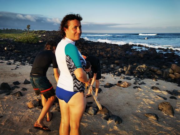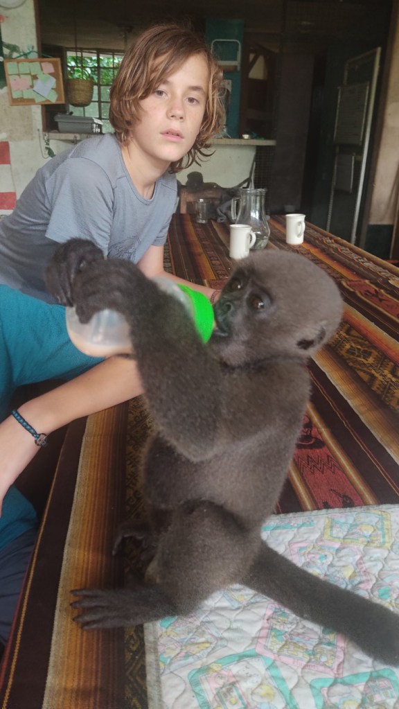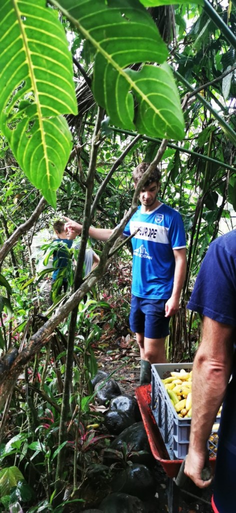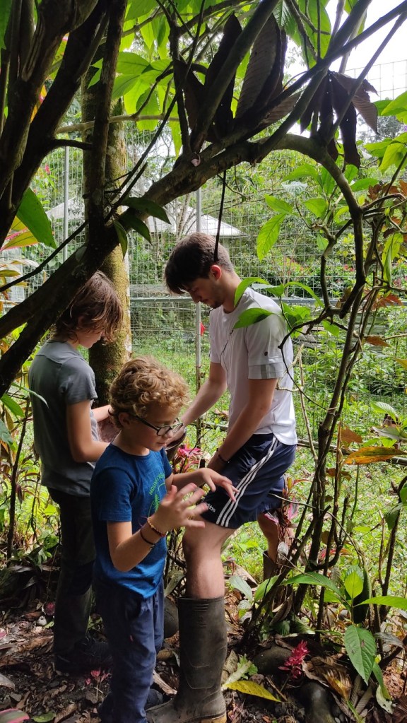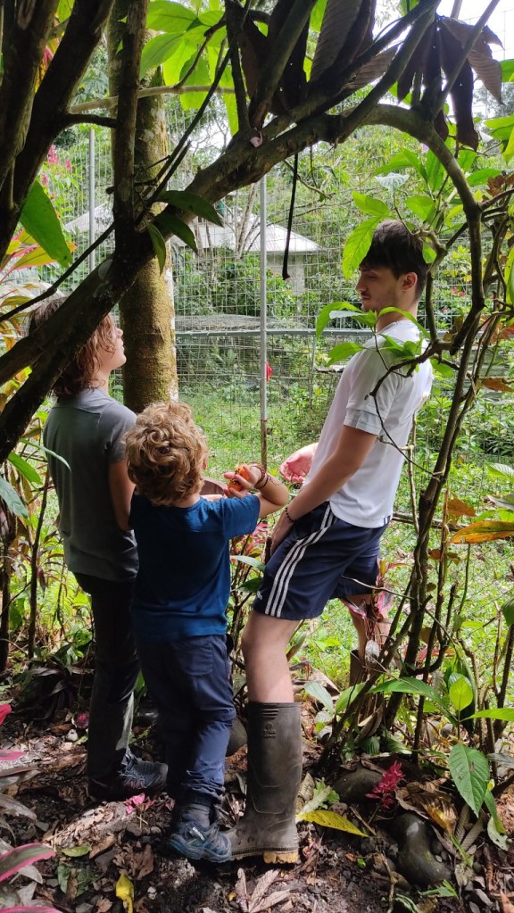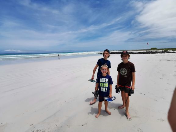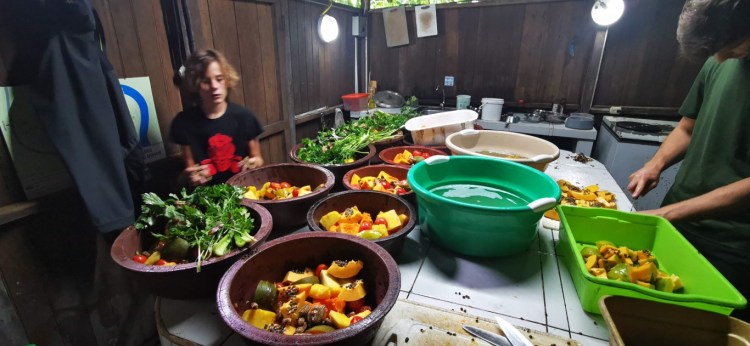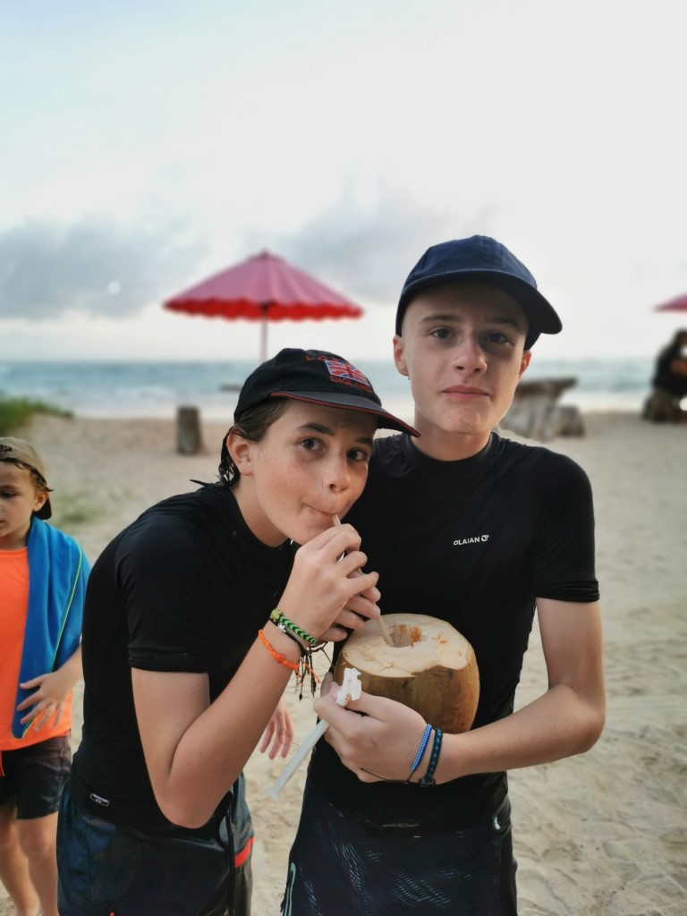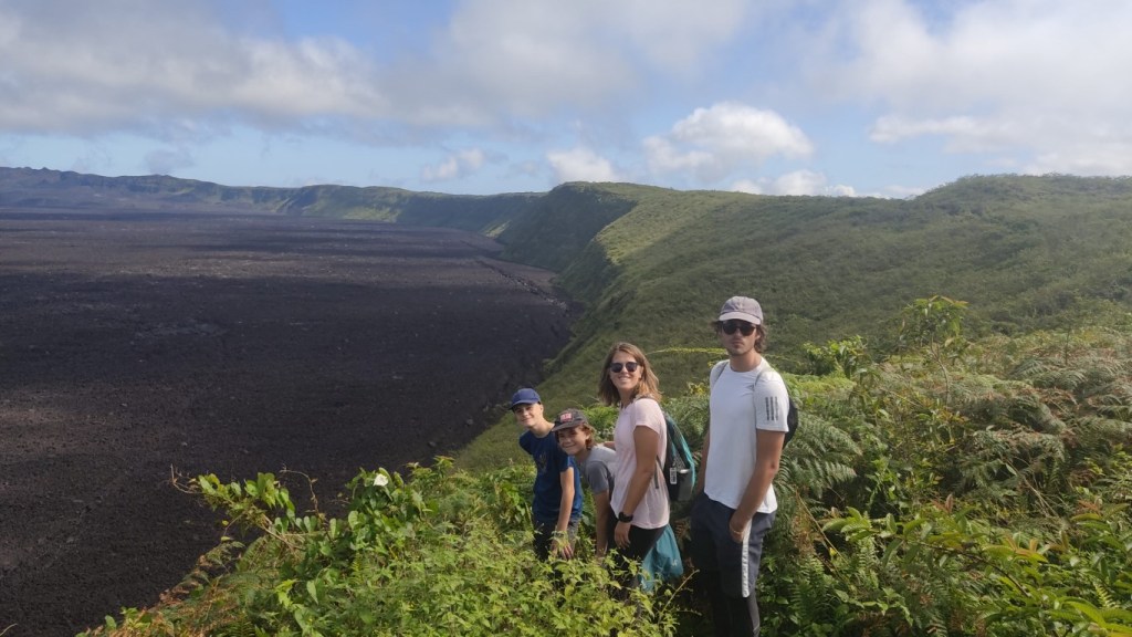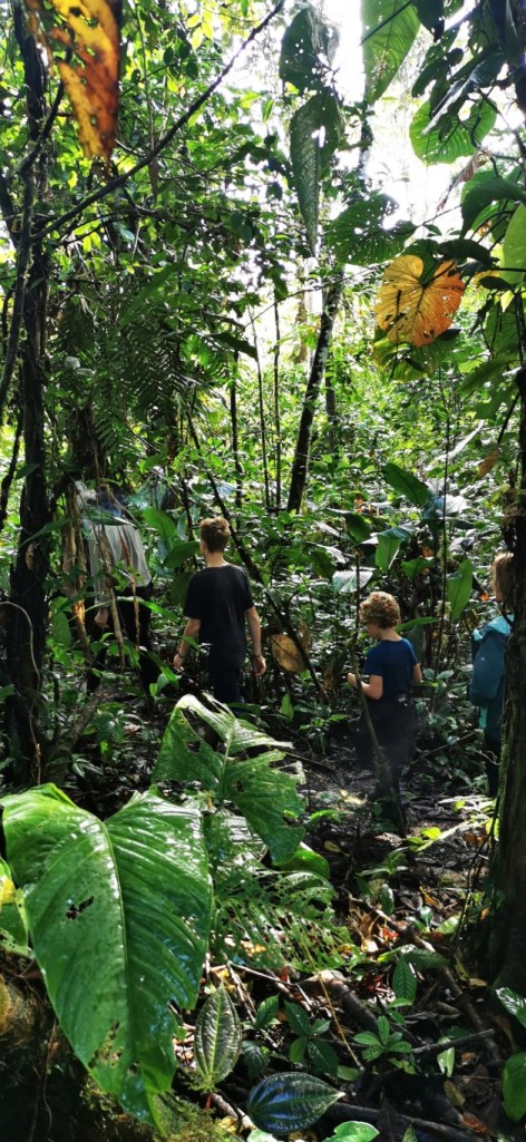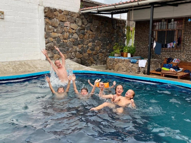Nous sommes reçus dans une belle auberge au style colonial avec une grande cour intérieur. La chef Alejandra nous reçoit et nous donne notre équipement : tablier et chapeau de cuisinier vert anis, on dirait ratatouille:) et c’est parti pour 2 heures de cuisine. Nous préparons en entrée la Causa Rellena : il s’agit d’une entrée à base de purée de pommes de terre, thon, tomate, oignons, citrons, aji jaune et avocat. Ensuite libre à chacun de bien présenter son assiette, les enfants ont été de vrais artistes ! Pour le plat principal, nous cuisinons un lomo saltado : il s’agit d’un bœuf que l’on fait flamber à l’asiatique avec du aji jaune, de l’oignon, de la sauce soja, de la sauce d’huîtres et du vin rouge. Le tout est servi avec des frites maison et du riz bien sûr. On se régale. Et pour clôturer le tout, en dessert, elle nous sert une crema volteada, à base de quinoa sous la forme d’un riz au lait avec de la cannelle.