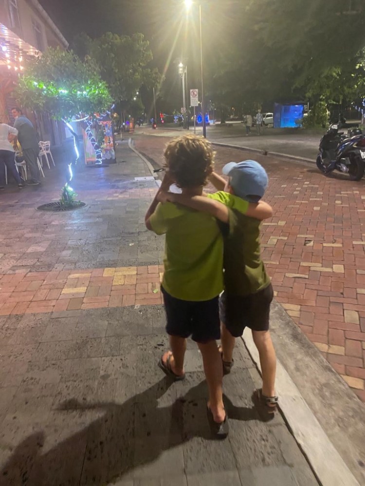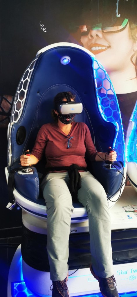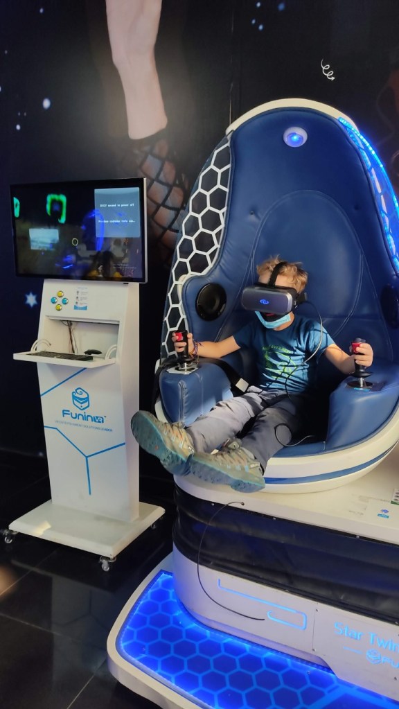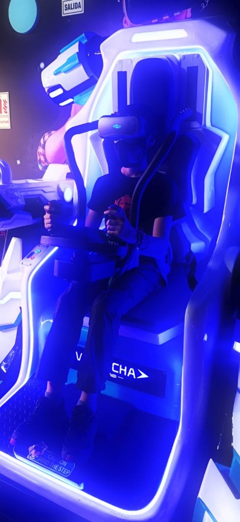 L’après-midi, nou nous rendons dans un grand centre commercial afin de récupérer de nouvelles cartes SIM pour le Pérou. Il a fallu s’y reprendre à deux fois pour pouvoir y rentrer car le videur à l’entrée nous réclame le port de 2 masques… Le Pérou nous fait halluciner sur ces consignes concernant la pandémie… Une fois sur place, après avoir réglé avec Claro notre prépayé, nous tombons sur un magasin de jeux vidéo. Allez on se laisse tenter : une partie de simulateur chacun. Les enfants sont aux anges.