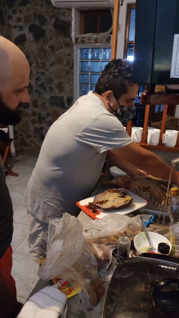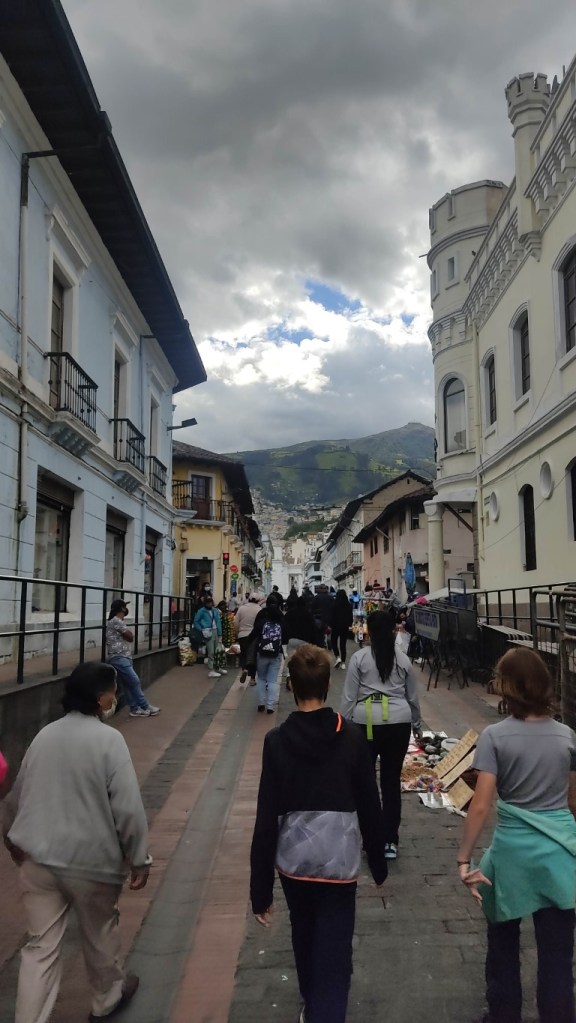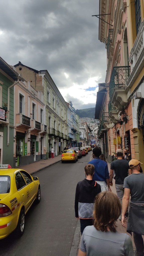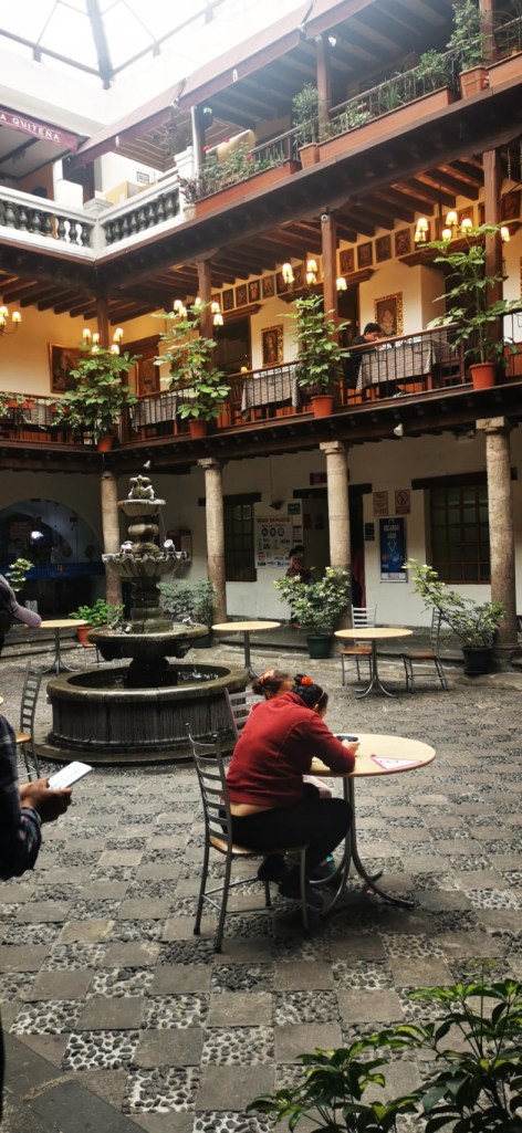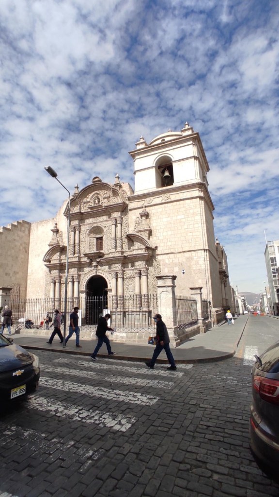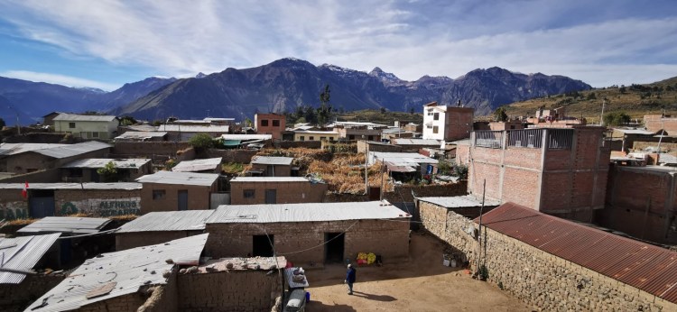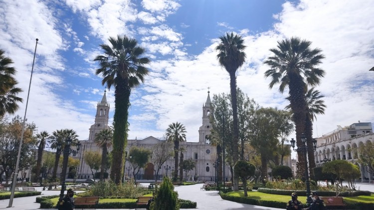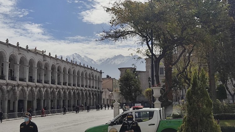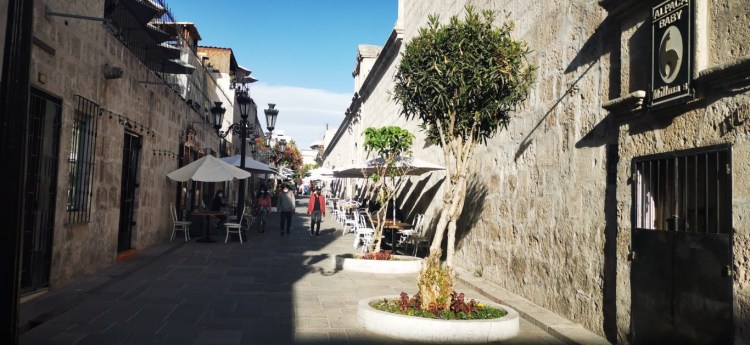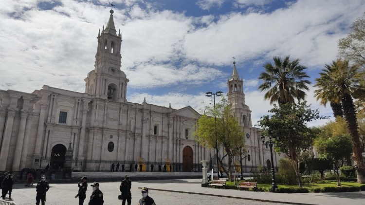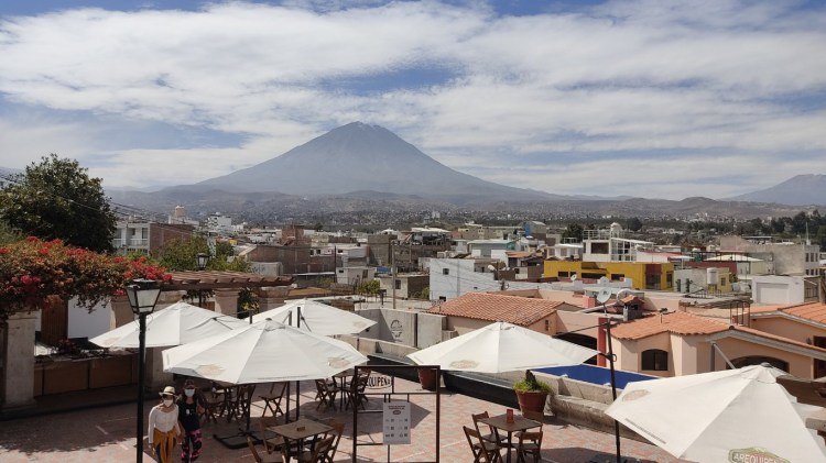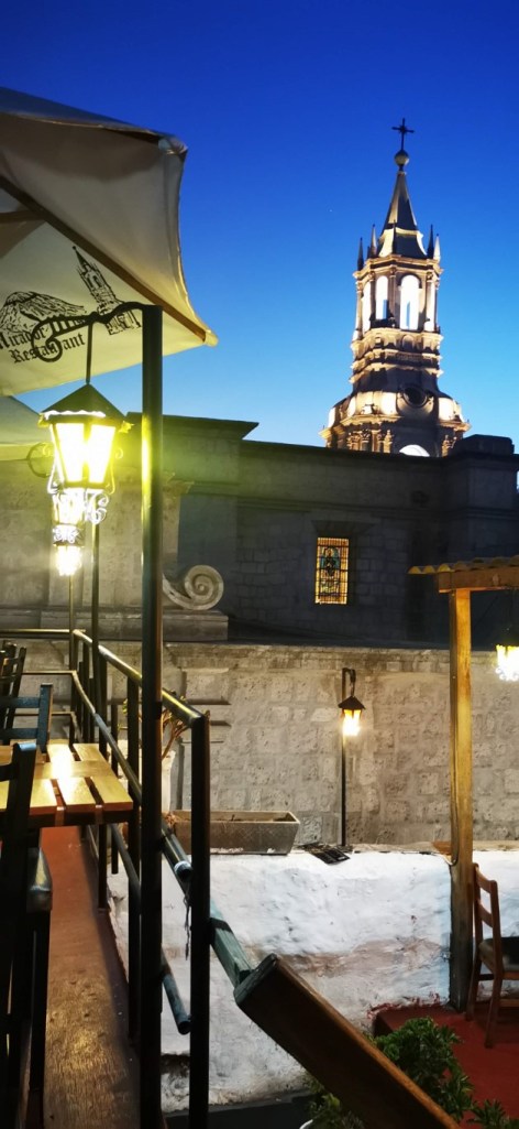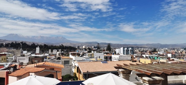 Nous partons de Quito le matin. La journée va être longue et pas très directe. Nous avons trois vols au total pour rejoindre Arequipa au sud du Pérou : Quito-Guayaquil, Guayaquil-Lima et enfin Lima-Arequipa. Dès le second vol, il faut se suivre les consignes Covid du Pérou autrement dit masque et visière dans l’avion… On en a acheté in extremis sur le marché de Quito, autant dire qu’elles sont tellement de mauvaise qualité qu’on ne voit rien avec. On prend notre mal en patience le temps d’arriver à Arequipa. Nous atterrissons en début de soirée. La sortie de l’aéroport est un peu chaotique : on ne comprend pas bien la façon péruvienne de faire la queue, je dirais d’ailleurs que c’est plus chacun pour soi :). On finit par trouver un taxi qui nous amène vers notre auberge. Au moment de lui payer la course avec un billet tout neuf de 100 soles péruvien (équivalent 20€ chez nous), le chauffeur nous dit ne pas avoir la monnaie… On va vite comprendre dans les jours qui suivent que c’est difficile de caser les billets de 100 soles qui distribuent les ATM… Enfin Ludo se débrouille avec notre hotel pour payer le taxi et on peut enfin se poser. Mais malheureusement il ne faut pas trainer, le couvre-feu est dans 30 minutes, si on veut dîner il va falloir faire vite. On finit par trouver une petite boutique d’empanadas, ça le fera pour ce soir.