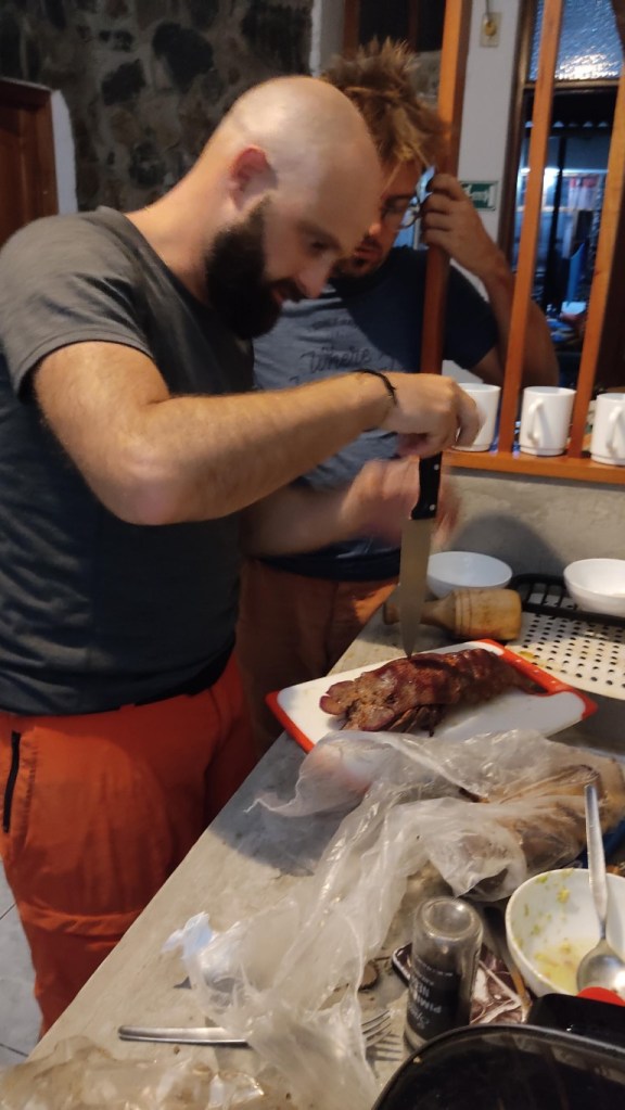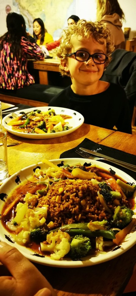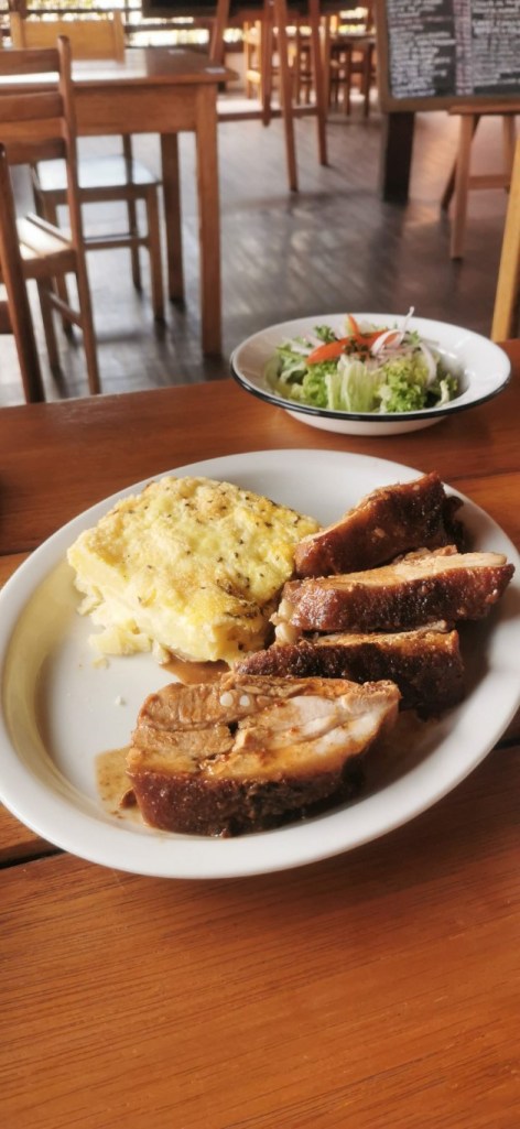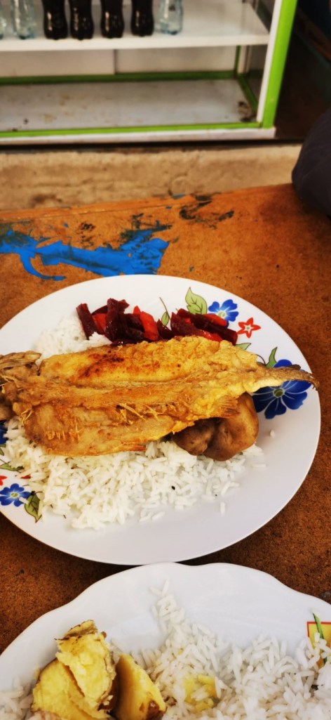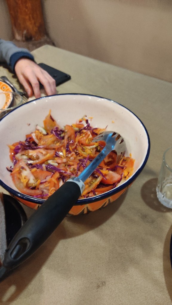 Nous partons ensuite déjeuner dans un restaurant typique du coin, une picanteria, recommandé par un blog de voyageurs. Là le choix est très difficile, il y a une trentaine de plats dont on ne comprend pas la moitié de ce que cela peut être. On demande conseil au serveur et on se retrouve avec 3 énormes assiettes de viande cuisinée, du riz (oui ça il y en a toujours partout) et une magnifique tomate farcie qui n’en est pas une… attention ça pique !!! c’était un piment farci, très bon, mais âme sensible s’abstenir.