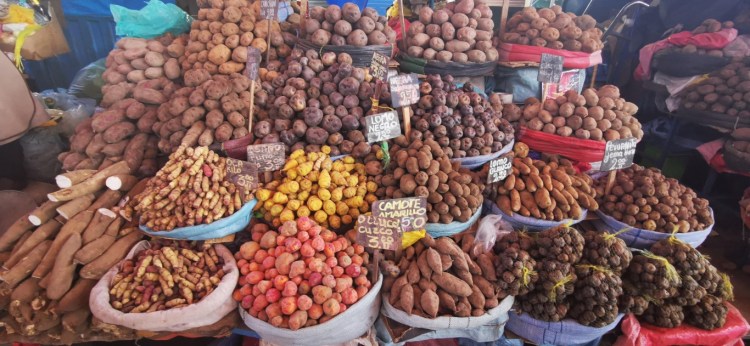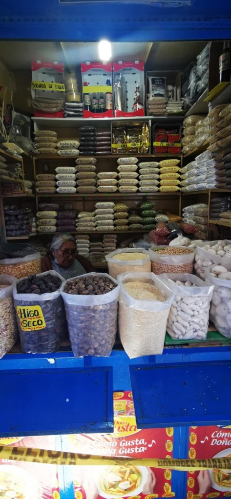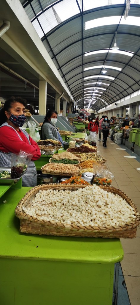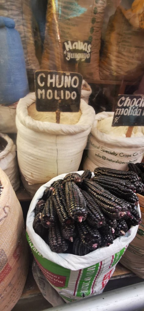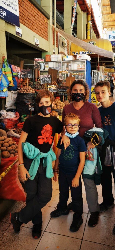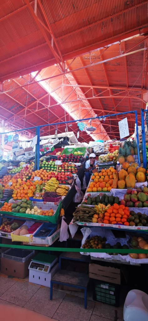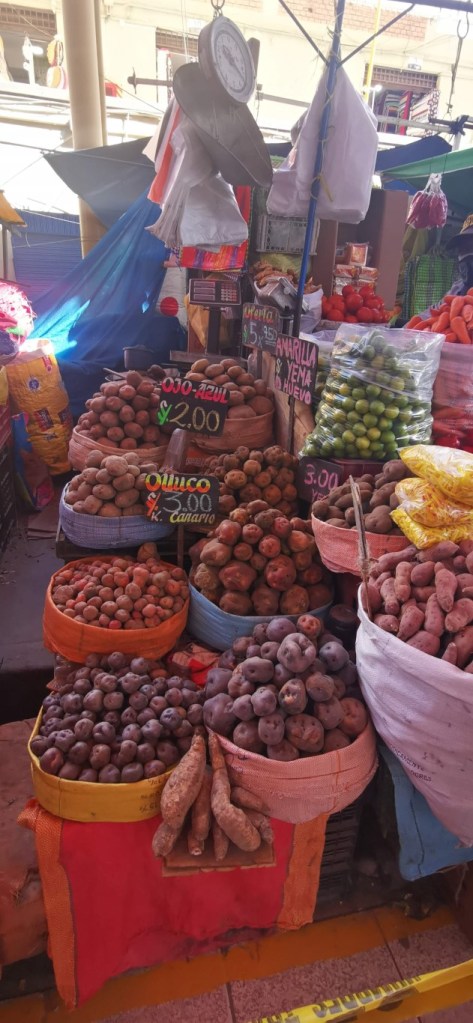 Après ce super moment en famille, nous rentrons à l’auberge. Sur la route, nous passons par le marché que notre guide du monastère nous a conseillé de voir. La structure du marché a été réalisée par Gustave Eiffel lui-même. A l’intérieur, tout est organisé par rayons viande, poissons, légumes, fruits, jus, plantes médicinales… C’est impressionnant et les étals sont appétissants. On découvre la spécificité du Pérou : les pommes de terre. Ils en ont plus de 3000 sortes différentes !! Nous ne regrettons pas ce petit détour.