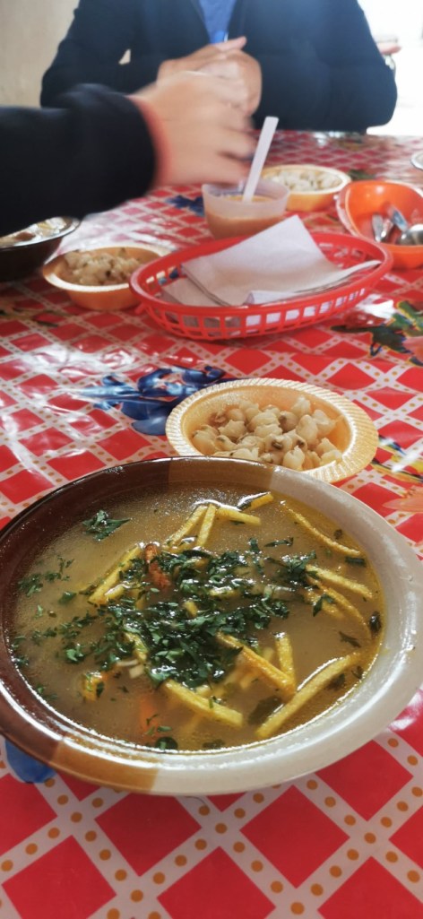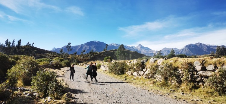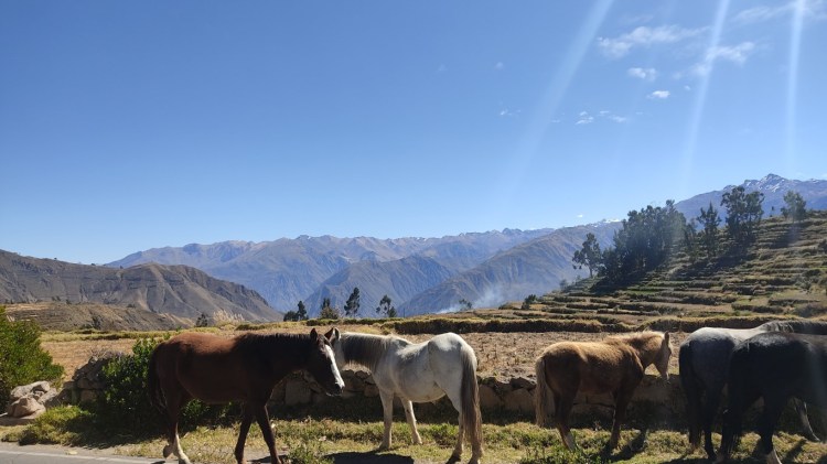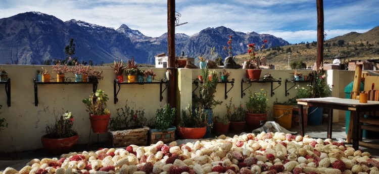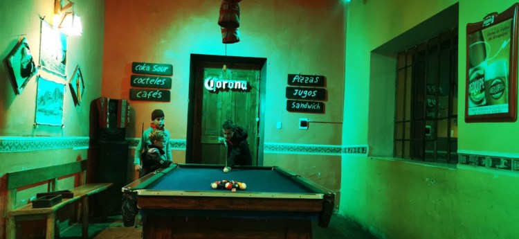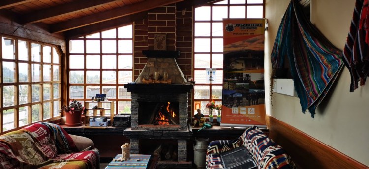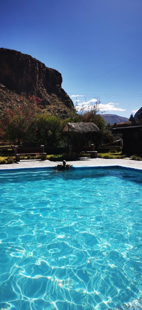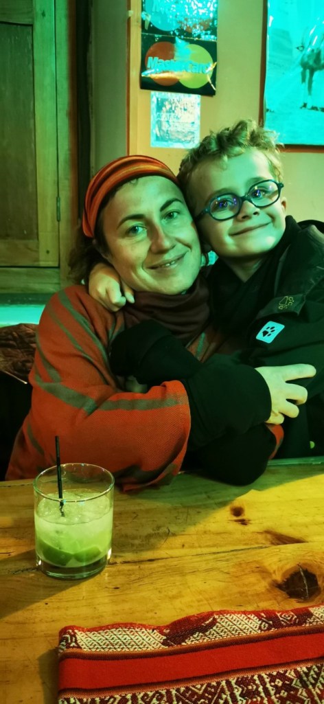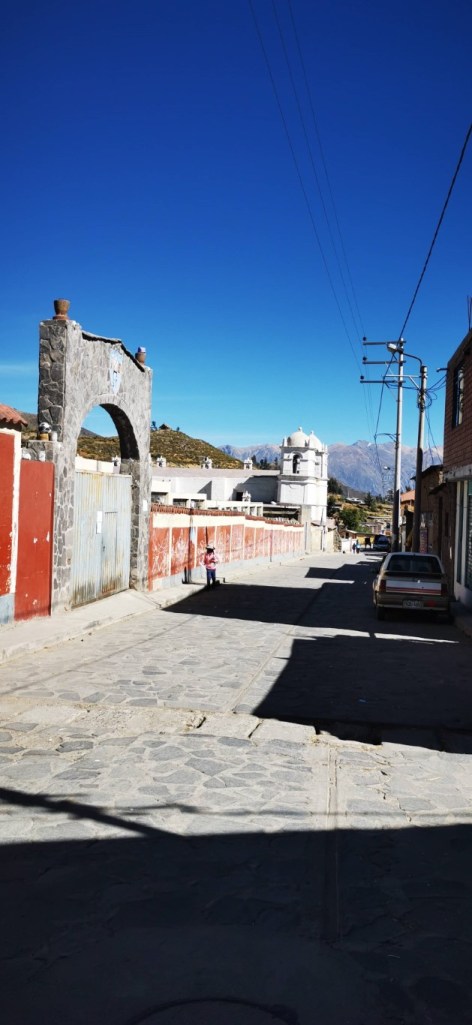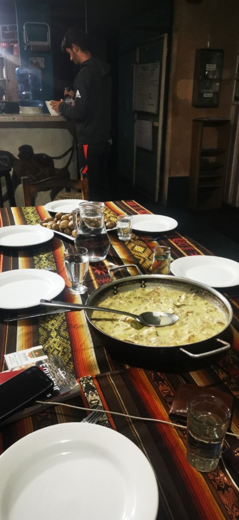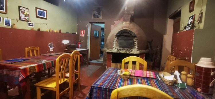 Le temps de prendre notre repas, puis nous repartons avec nos affaires pour prendre un collectivo en direction de Chivay. Une fois à Chivay, nous posons nos affaires à l’hotel. Nous allons faire un tour au marché artisanal, puis nous allons négocier notre trajet de bus touristique du lendemain pour rejoindre le lac Titicaca. On rentre ensuite se reposer un peu à l’hotel avant le dîner. Puis nous partons en quête d’un restaurant « chauffé » (peine perdue, personne ne chauffe sa maison ou son restaurant au Pérou) ou du moins avec des portes fermées pour dîner (oui oui je vous assure, tous les restaurants laissent les portes d’entrée grande ouverte). Chivay est vraiment l’endroit le plus froid qu’on ait connu de notre voyage. On finit par trouver le restaurant qui fera l’affaire pour ce soir avec un petit cocktail pour nous réchauffer en apéro.