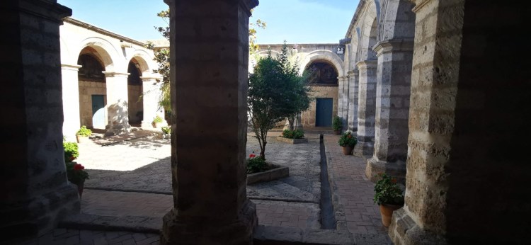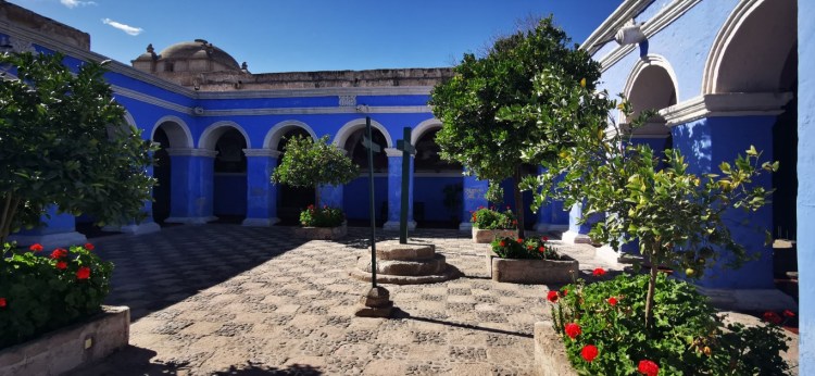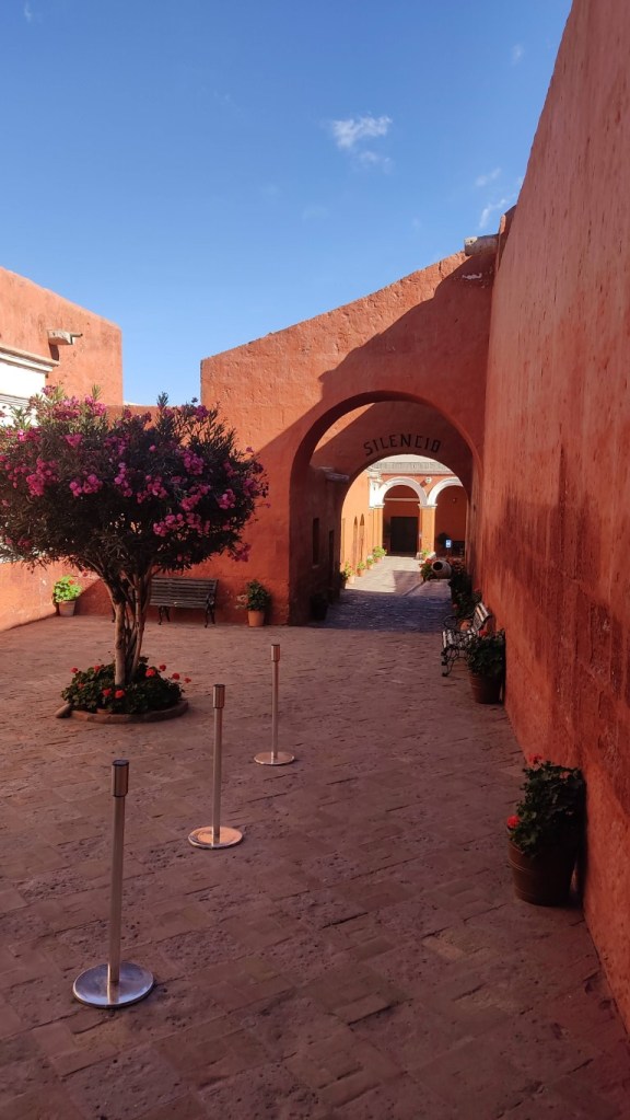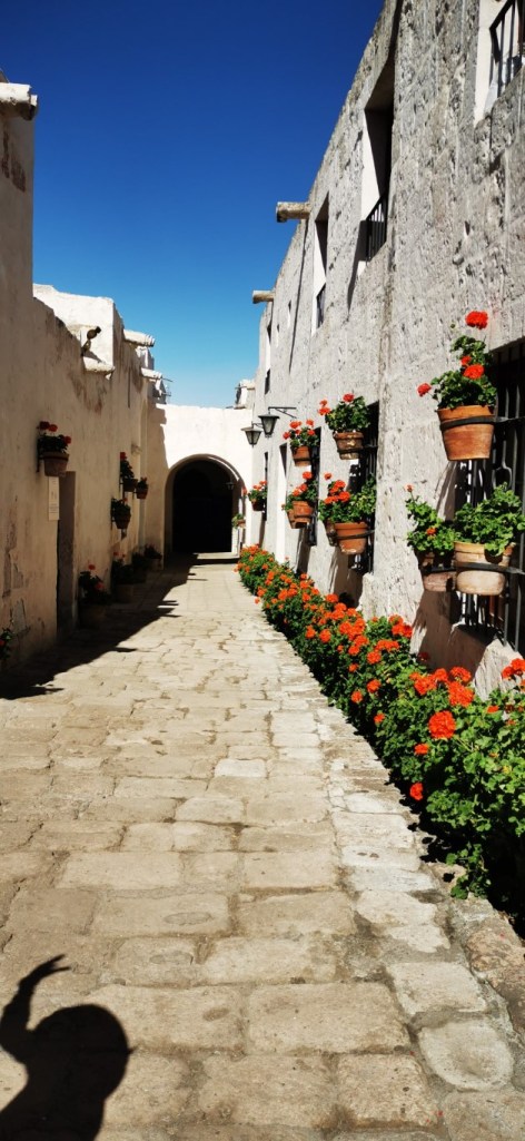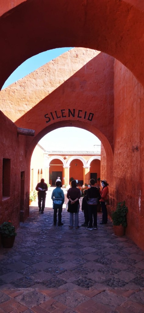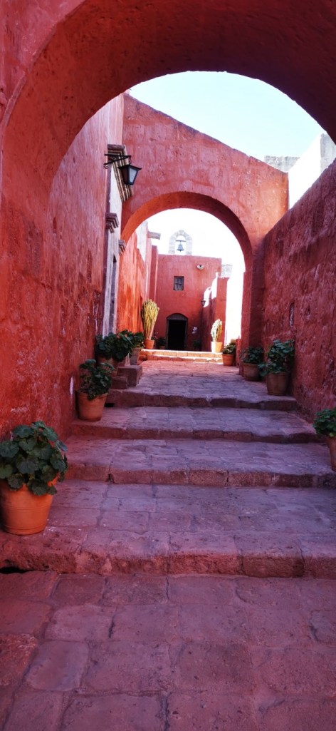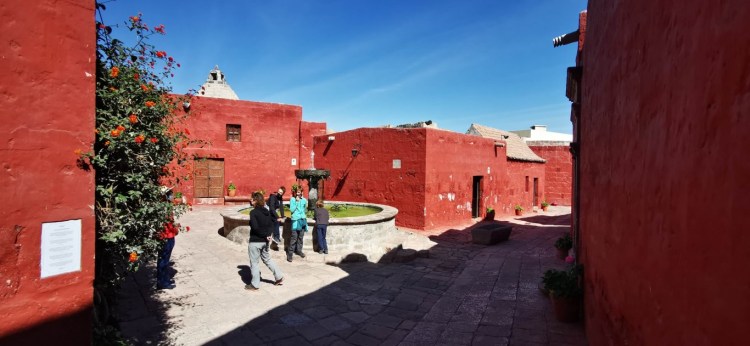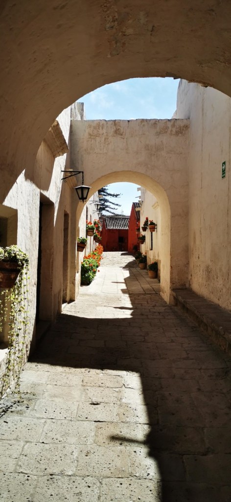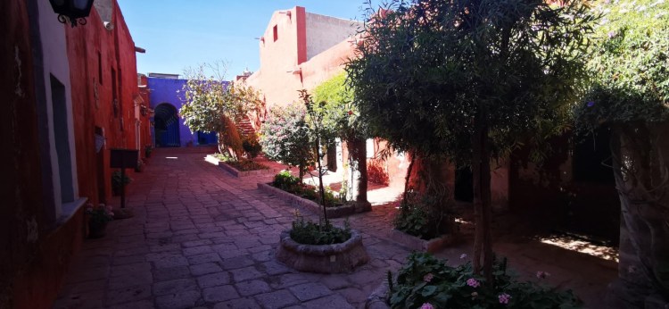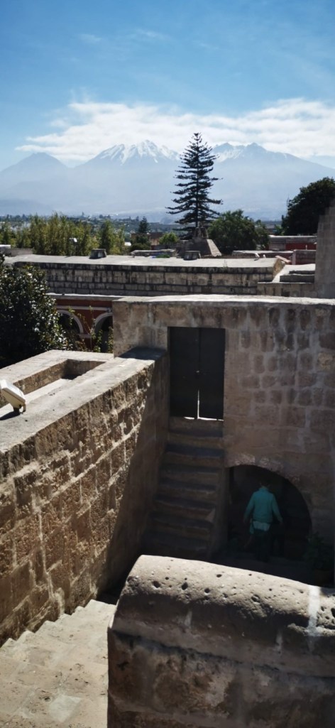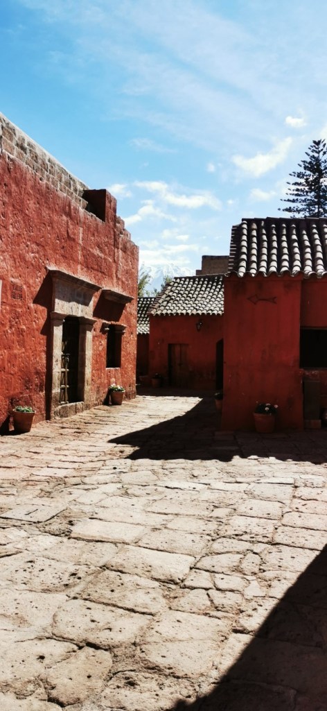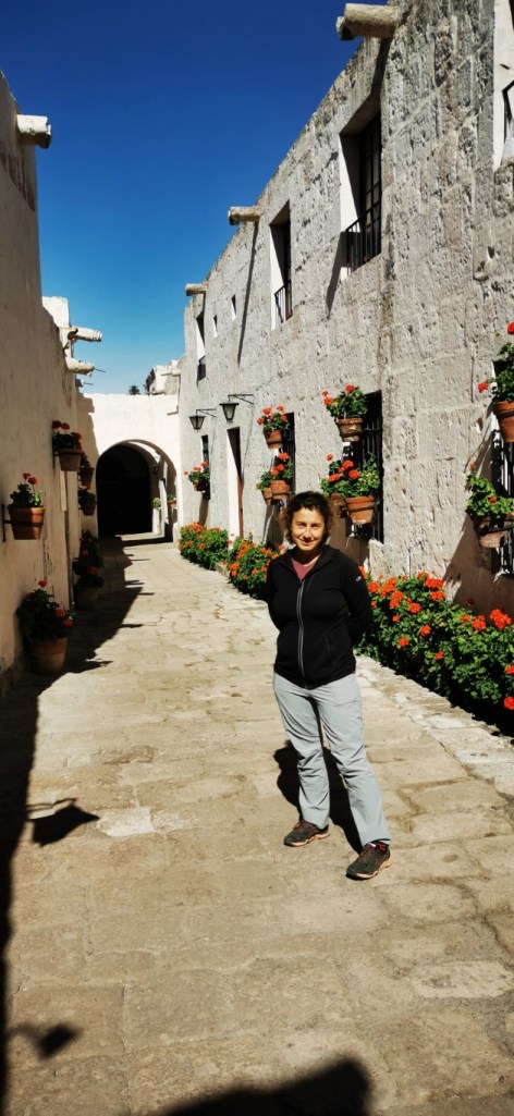 Le lendemain matin, nous allons visiter le monastère de Santa Catalina. Nous arrivons pour l’ouverture et avons la chance de trouver un guide francophone pour la visite. Ce monastère est juste incroyable : une ville dans la ville à l’architecture coloniale, aux couleurs chatoyantes, un havre de paix au milieu d’Arequipa où vivent encore quelques sœurs. La visite est très intéressante, nous discutons beaucoup avec le guide aussi de la vie actuelle, des élections, de la pandémie…