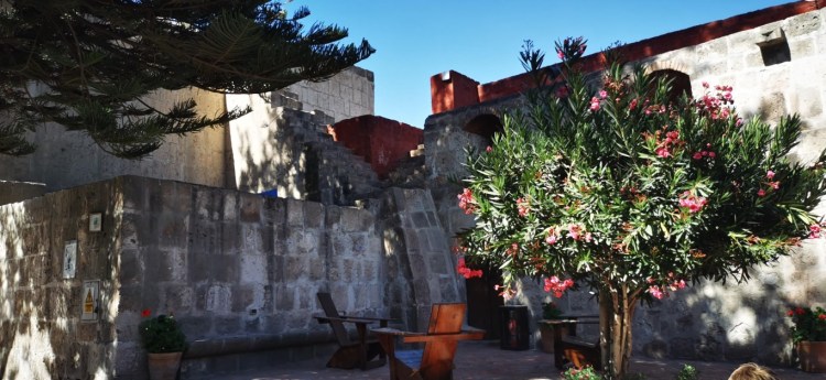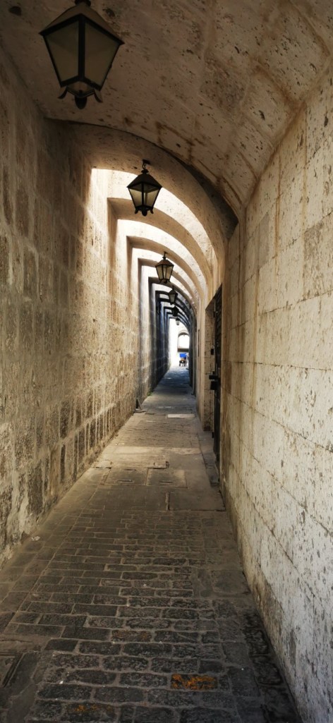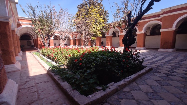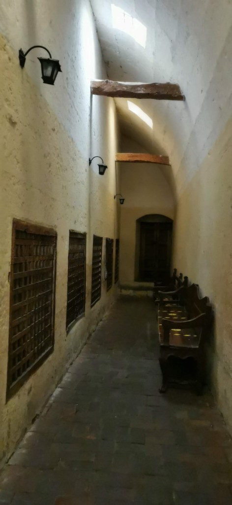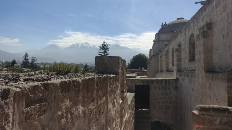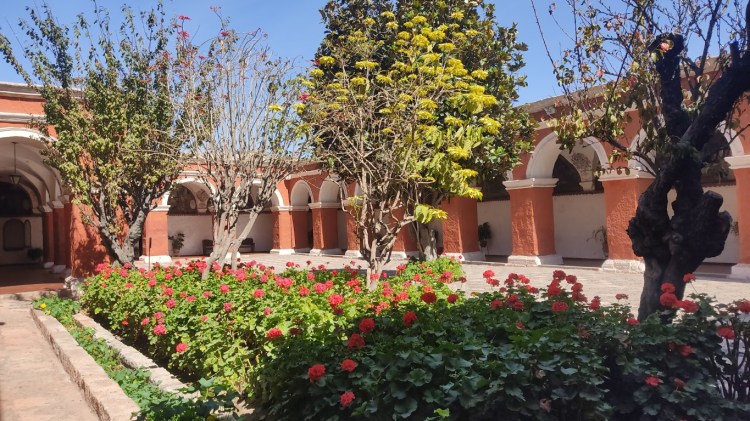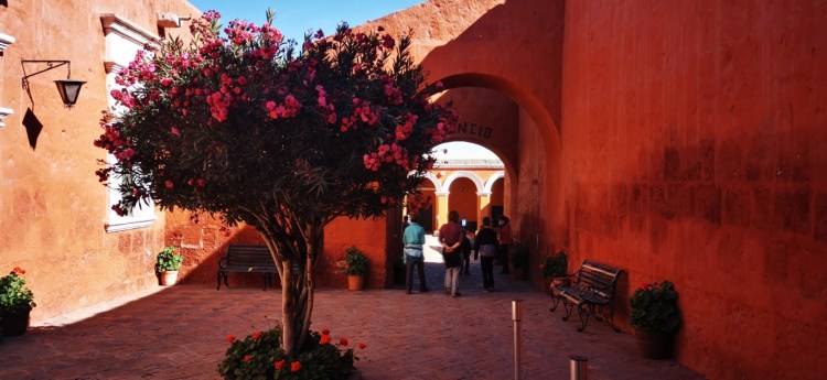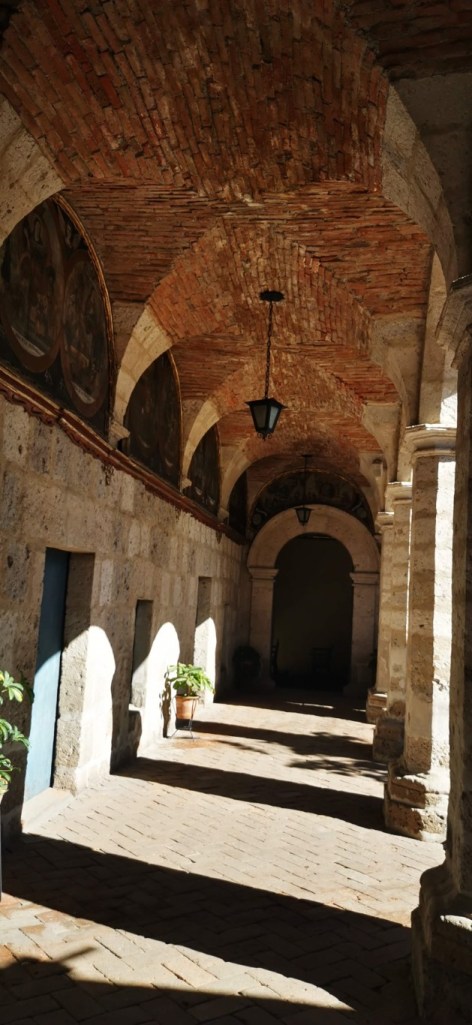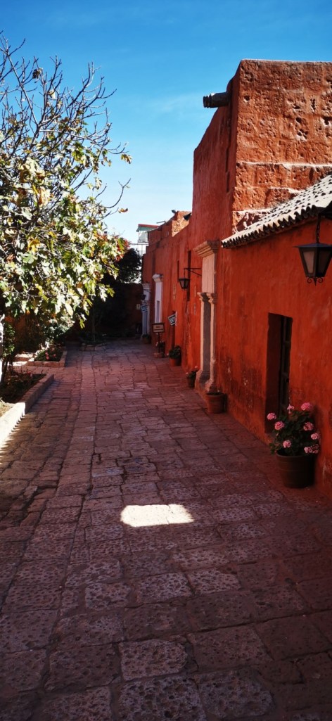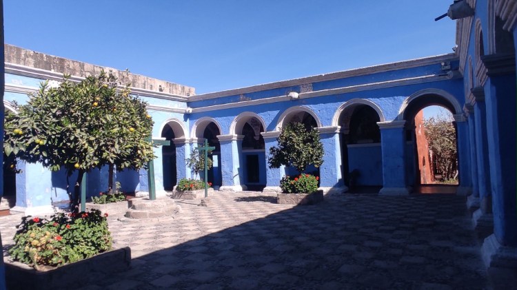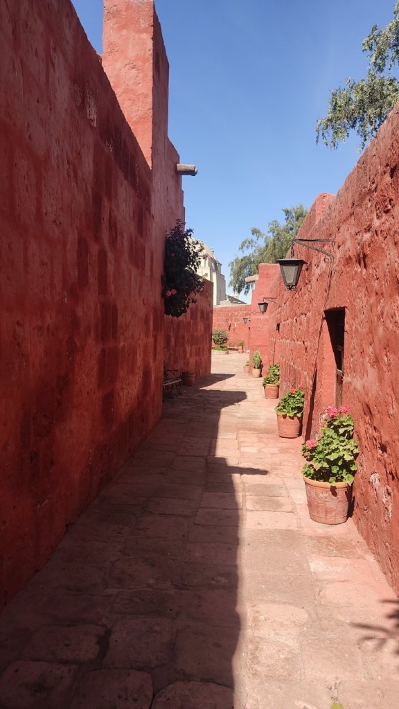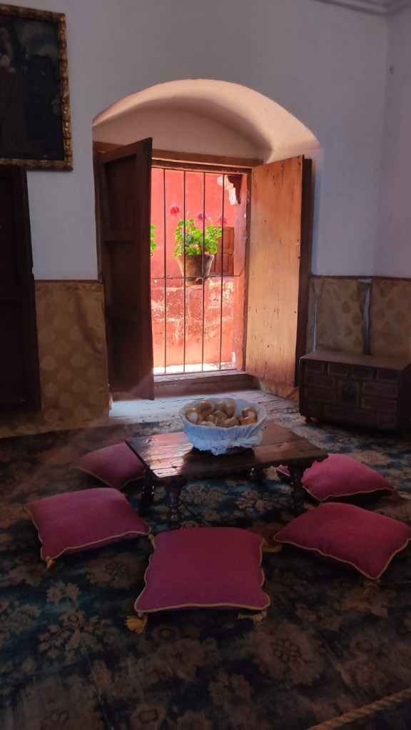 Le lendemain matin, nous allons visiter le monastère de Santa Catalina. Nous arrivons pour l’ouverture et avons la chance de trouver un guide francophone pour la visite. Ce monastère est juste incroyable : une ville dans la ville à l’architecture coloniale, aux couleurs chatoyantes, un havre de paix au milieu d’Arequipa où vivent encore quelques sœurs. La visite est très intéressante, nous discutons beaucoup avec le guide aussi de la vie actuelle, des élections, de la pandémie…