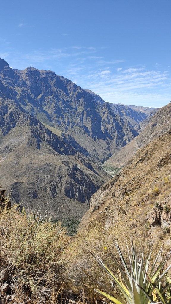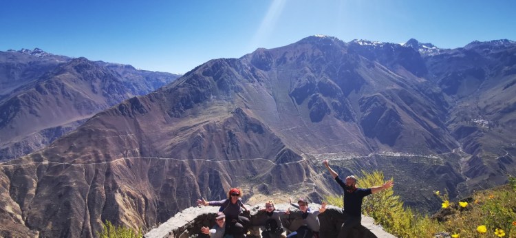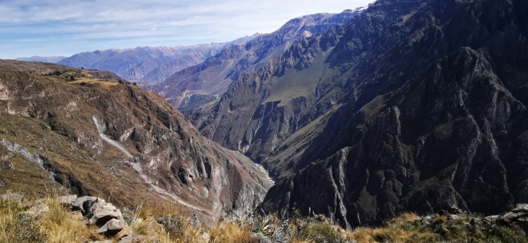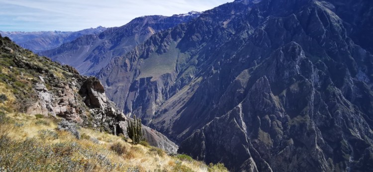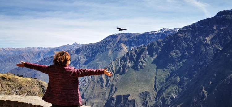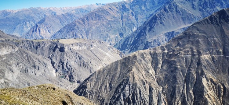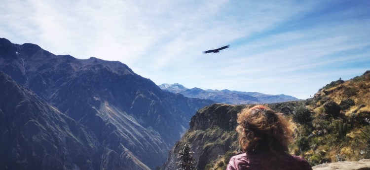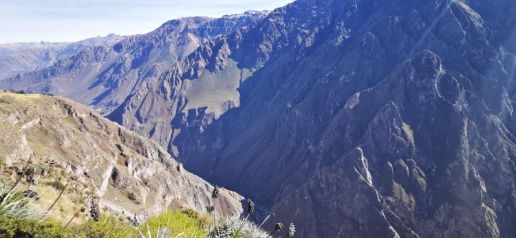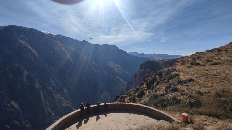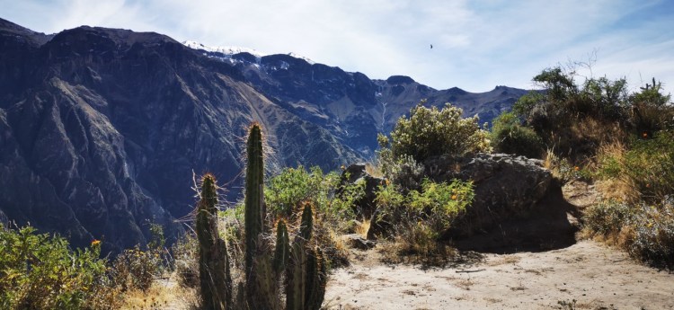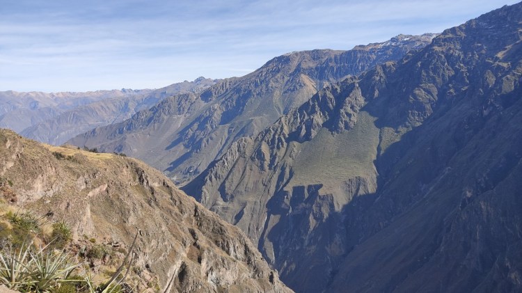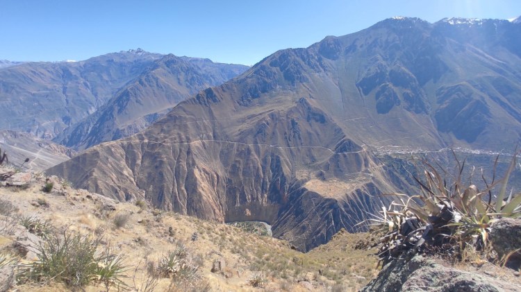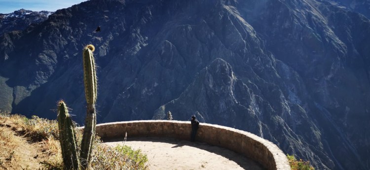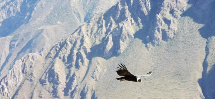 Le lendemain matin, nous nous levons tôt pour attraper le collectivo de 8h en direction de Canabaconde où se trouve le mirador del condor. Contrairement aux 2 heures de route annoncées, nous arrivons au bout de seulement 45 minutes à destination. La route pour s’y rendre est très belle car elle longe le canyon de Colca qui se creuse de plus en plus au fur et à mesure que l’on s’éloigne de Chivay. Nous arrivons donc un peu avant 9h au mirador del condor, c’est parfait car on nous a indiqué que les condors pouvaient être visibles entre 9h et 11h le matin seulement. Ce mirador domine le canyon, qui s’enfonce de plus de 3000m de profondeur. Autant vous dire que le paysage est vraiment à couper le souffle. Nous quittons vite le mirador principal où tous les touristes s’agglutinent (certes il n’y en a qu’une vingtaine c’est rien par rapport au temps normal…) pour rejoindre un autre mirador en contre-bas où nous sommes tous seuls. Et là, que le spectacle commence ! Nous voyons un, deux, trois… en fait une dizaine de condors qui pendant deux heures vont voler au dessus de nos têtes, s’enfoncer dans le canyon, remonter… Un vrai balai de ces oiseaux majestueux pouvant atteindre 3,5m d’envergure les ailes déployées. Lors qu’ils passent au dessus de nos têtes, nous entendons même le bruit de l’air glissant sur leurs ailes. Nous sommes subjugués et passons près de deux heures à les observer. Nous sommes tellement gâtés que nous décidons de nommer le 10 juin la journée officielle du condor ! Puis nous continuons la boucle des miradors, 5 kms au total, pour profiter pleinement du paysage de ce canyon. De retour au mirador principal, il n’y a plus personne, même pas les femmes Queschuas qui vendaient des souvenirs. Nous patientons une dizaine de minutes avant d’alpaguer un collectivo pour rejoindre le village de Canabaconde.