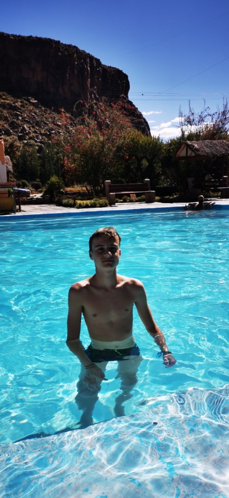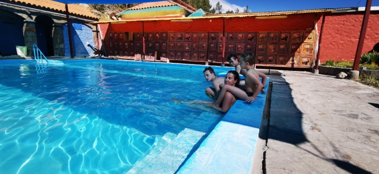 Le lendemain matin, nous avons un peu de temps pour profiter encore du coin. Nous décidons alors de tester les thermes à une dizaine de minutes de la ville. Les thermes sont organisés en plusieurs bassins à différentes températures. Du fait de la pandémie, ils essaient de ne pas mixer les gens dans les bassins. Du coup, on se retrouve dans le plus grand et le plus chaud des bassins, tous les 5, à se relaxer face à la magnifique vue sur le canyon, de quoi bien rattraper le froid des nuits passées.