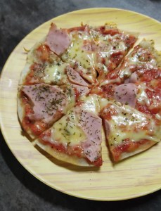 Mélanger la farine, l’eau et l’huile jusqu’à obtenir une pâte homogène. Mouillez la levure et mélanger avec un peu de sucre. Ajouter la levure à la pâte. Laisser reposer au moins 1h avant cuisson. Pour cuire une pizza à la poêle, faire revenir la pâte une fois étalée de chaque côté avant de mettre les ingrédients et couvrir pour la cuisson des ingrédients.